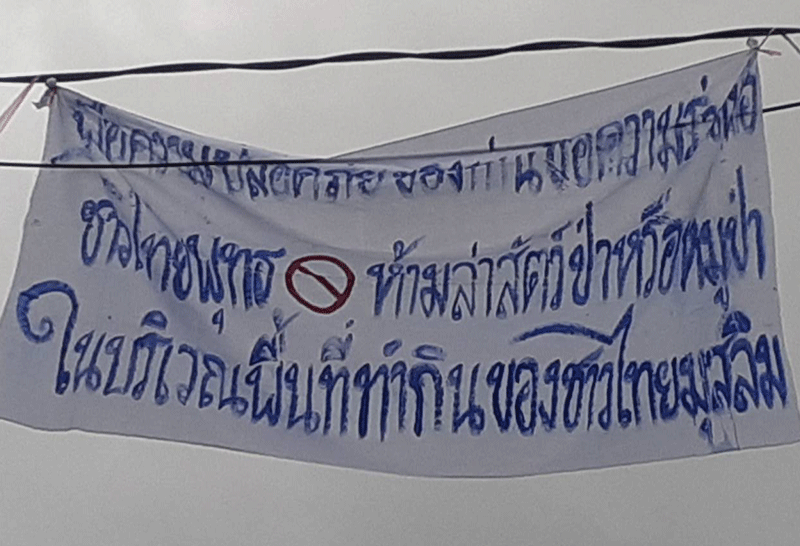 จุดที่ 2 คนร้ายได้นำป้ายผ้าสีขาว ขนาดกว้าง 1 หลา ยาว 2 หลา ซึ่งเขียนเป็นอักษรภาษาไทยสีน้ำเงิน มีใจความว่า เพื่อความปลอดภัยของท่าน ขอความร่วมมือชาวไทยพุทธ ห้ามล่าสัตว์ป่าหรือหมูป่า ในบริเวณพื้นที่ทำกินของชาวไทยมุสลิม ไปผูกติดไว้กับราวสะพานเขตรอยต่อบ้านไอร์ตุย ม.1 กับบ้านกะลุบี ม.4 ต.ซากอ โดยไม่มีวัตถุแปลกปลอมใดๆวางไว้ในที่เกิดเหตุ