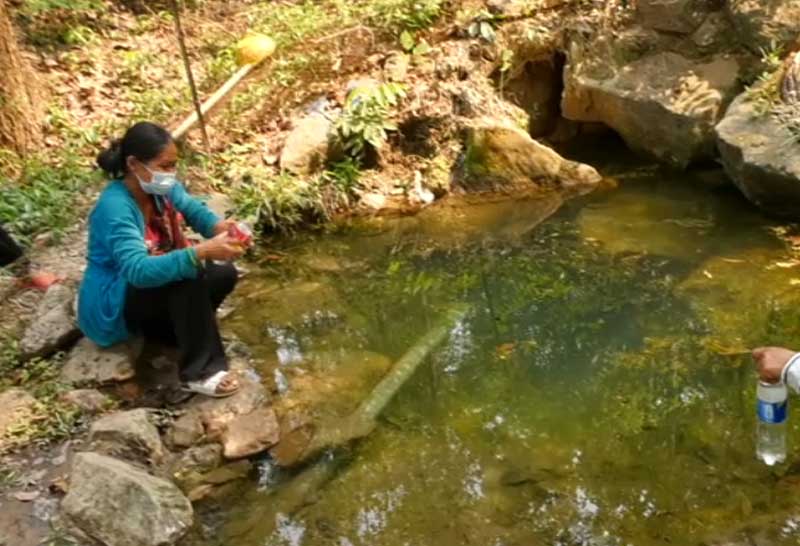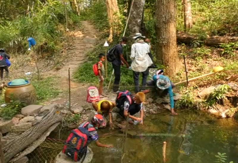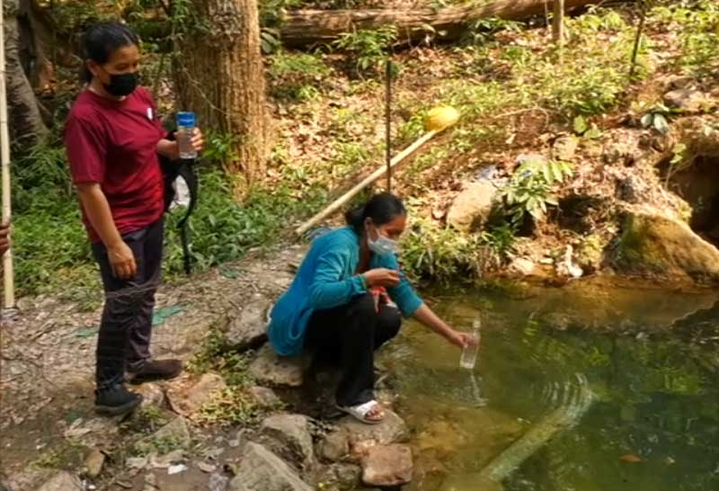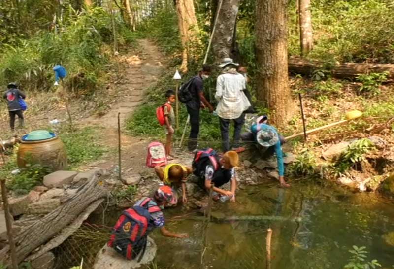 ชาวบ้านศรีสะเกษแห่ไปตักน้ำศักดิ์สิทธิ์ที่ภูหงอนไก่ ขณะเชื่อว่าหากนำมาดื่มทาตัวแล้วรักษาได้ทุกโรค