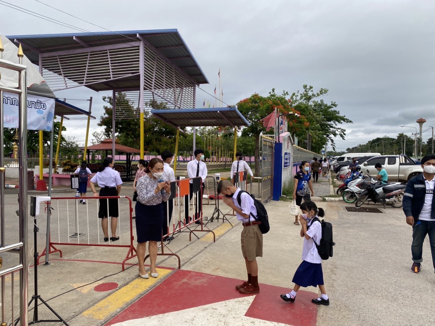 โดยนักเรียนทุกคนต้องสวมหน้ากากอนามัยเข้าโรงเรียนทุกคน ต้องผ่านผ่านจุดคัดกรอง ต้องวัดอุณภูมิร่างกายต้องมาเกิน 37.5 องศาเซลเซียล ให้นักเรียนสวมหน้ากากอนามัยตลอดเวลา