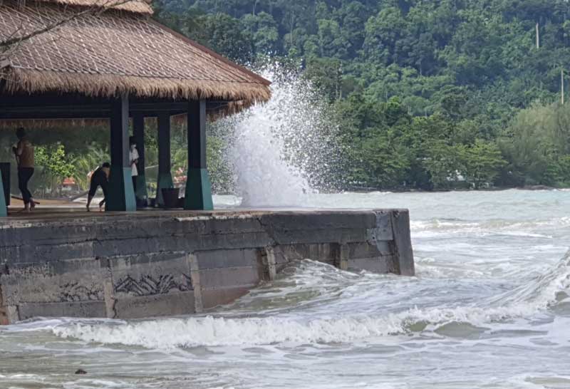 โดยบริเวณทะเลอันดามันมีคลื่นสูงประมาณ 2 เมตร บริเวณที่มีฝนฟ้าคะนองคลื่นสูงมากกว่า 2 เมตร