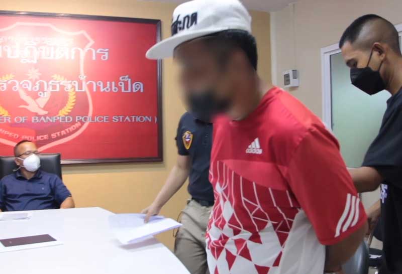 ก่อนจะควบคุมตัวมาสอบสวน ที่ สภ.บ้านเป็ด โดยจากการตรวจสอบปัสสาวะ พบว่า มีสารเสพติด ซึ่งผู้ก่อเหตุยอมรับว่า ได้ก่อเหตุดังกล่าวจริง และได้เสพยาบ้า ก่อนก่อเหตุ จำนวน 2 เม็ด อ้างว่า คู่กรณีได้ติดหนี้พ่อของตนเองเมื่อหลายปีก่อนที่พ่อจะเสียชีวิต และครอบครัวผู้เสียหายทำไสยศาสตร์ใส่ ทำให้สติไม่ดี แล้วยังมาแลบลิ้นใส่อีก จึงโมโหมากแล้วไปก่อเหตุดังกล่าว