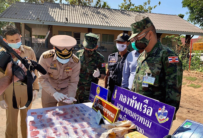 ที่สถานีเรือธาตุพนม อ.ธาตุพนม จ.นครพนม น.อ.สุรศักดิ์ สุวรรณเกศา ผบ.นรข.เขตนครพนม, น.ท.พิเชษฐ์ เมืองโคตร หน.สน.เรือธาตุพนม แถลงข่าวว่า เมื่อวันที่ 31 ม.ค.64 ว่า น.อ.สุรศักดิ์ สุวรรณเกษา ผบ.นรข.เขตนครพนม รับแจ้งจากแหล่งข่าวของ นรข.เขตนครพนม และข่าวจาก ชุด ชรบ.หมู่บ้านศรีบุญเรือง ว่าจะมีการลักลอบนำยาเสพติดเข้ามาในบริเวณราชอาณาจักร บริเวณริมฝั่งแม่น้ำโขง ต.พระกลางทุ่ง อ.ธาตุพนม จ.นครพนม จึงได้จัดเจ้าหน้าที่ชุดสกัดกั้นลาดตระเวนร่วมบูรณาการกับชุด ชรบ.หมู่บ้านในพื้นที่ ซุ่มเฝ้าตรวจบริเวณริมฝั่งแม่น้ำโขง บ.ศรีบุญเรือง ต.พระกลางทุ่ง อ.ธาตุพนม จ.นครพนม