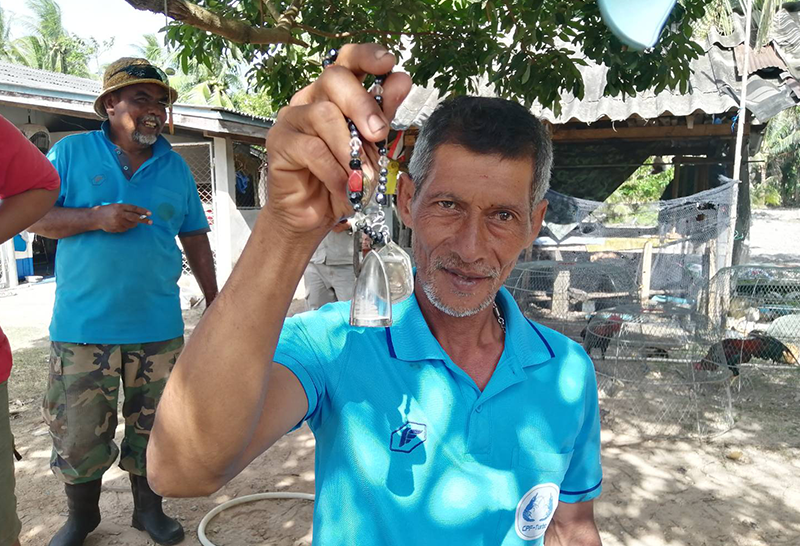 สอบสวนทราบว่ากำลังขับรถกลับมาจากส่งลูกกุ้งที่อ.หัวไทร จ.นครศรีธรรมราช และกำลังจะกลับฟาร์ม แต่เกิดอาการวูบทำให้รถเสียหลักไปแฉลบชนเสาไฟฟ้า แต่โชคดีที่ตนไม่เป็นอะไร พร้อมกับโชว์พระหลวงพ่อทวด รุ่นคงกันภัย ซึ่งเป็นพระหลวงพ่อทวดรุ่นแรกของวัดขนุน มาให้ดูและเชื่อว่าเป็นเพราะบารมีของหลวงปู่ทวดที่ตนแขวนไว้ที่หน้ารถเป็นประจำช่วยคุ้มครอง