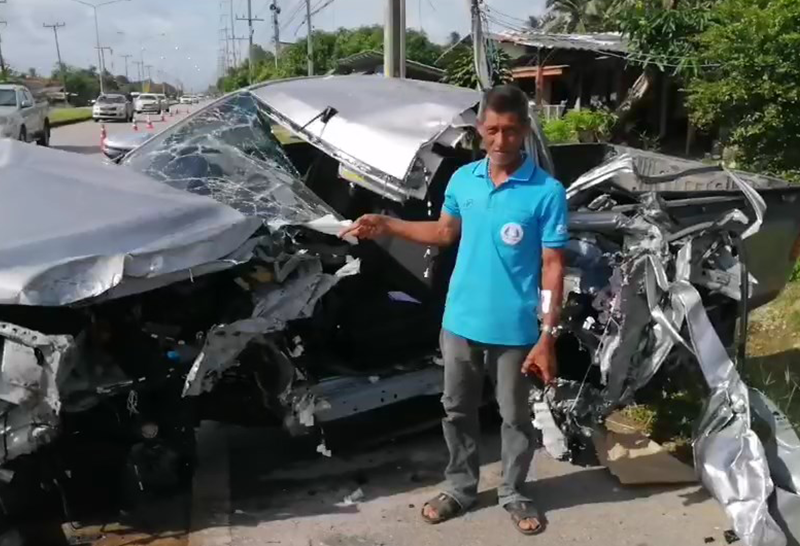 แต่ปรากฏว่าคนขับรอดตายอย่างน่าเหลือเชื่อและแทบไม่มีแม้รอยการขีดข่วนซึ่งต่างสภาพรถ ทราบชื่อ นายจรัญ จันทร์ดำ อายุ 51 ปี เป็นชาวหมู่8 ต.วัดขนุน อ.สิงหนคร จ.สงขลา