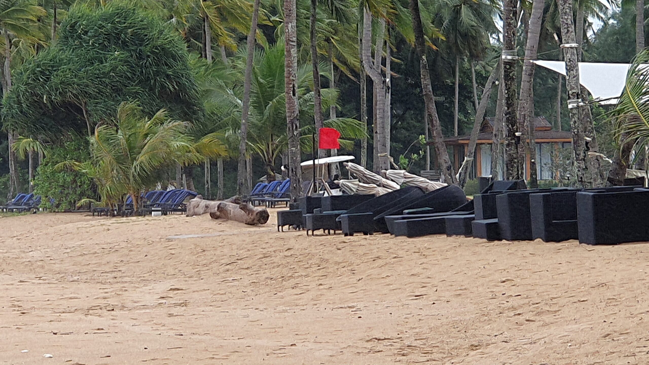 ผู้สื่อข่าวรายงาน สภาพอากาศทั่วไปของจังหวัดพังงา ฝนยังคงตกหนักต่อเนื่อง ท้องฟ้ามืดครึ้มสลับกับมีลมกรรโชกแรง บริเวณชายหาดคึกคัก หมู่ 3 ต.คึกคัก อ.ตะกั่วป่า พบว่าผู้ประกอบการโรงแรมปักธงแดงเตือนนักท่องเที่ยว ห้ามลงเล่นน้ำทะเลโดยเด็ดขาด เนื่องจากคลื่นลมในทะเลมีกำลังแรงและน้ำทะเลมีสีขุ่นข้น