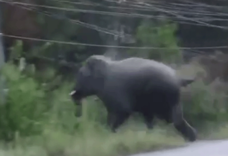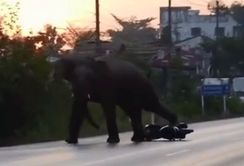ช้างป่าเขตรักษาพันธุ์สัตว์ป่าเขาอ่างฤาไนเข้าเมือง กระทืบรถจยย. นักข่าวพังเสียหาย เตือนชาวบ้านระมัดระวัง