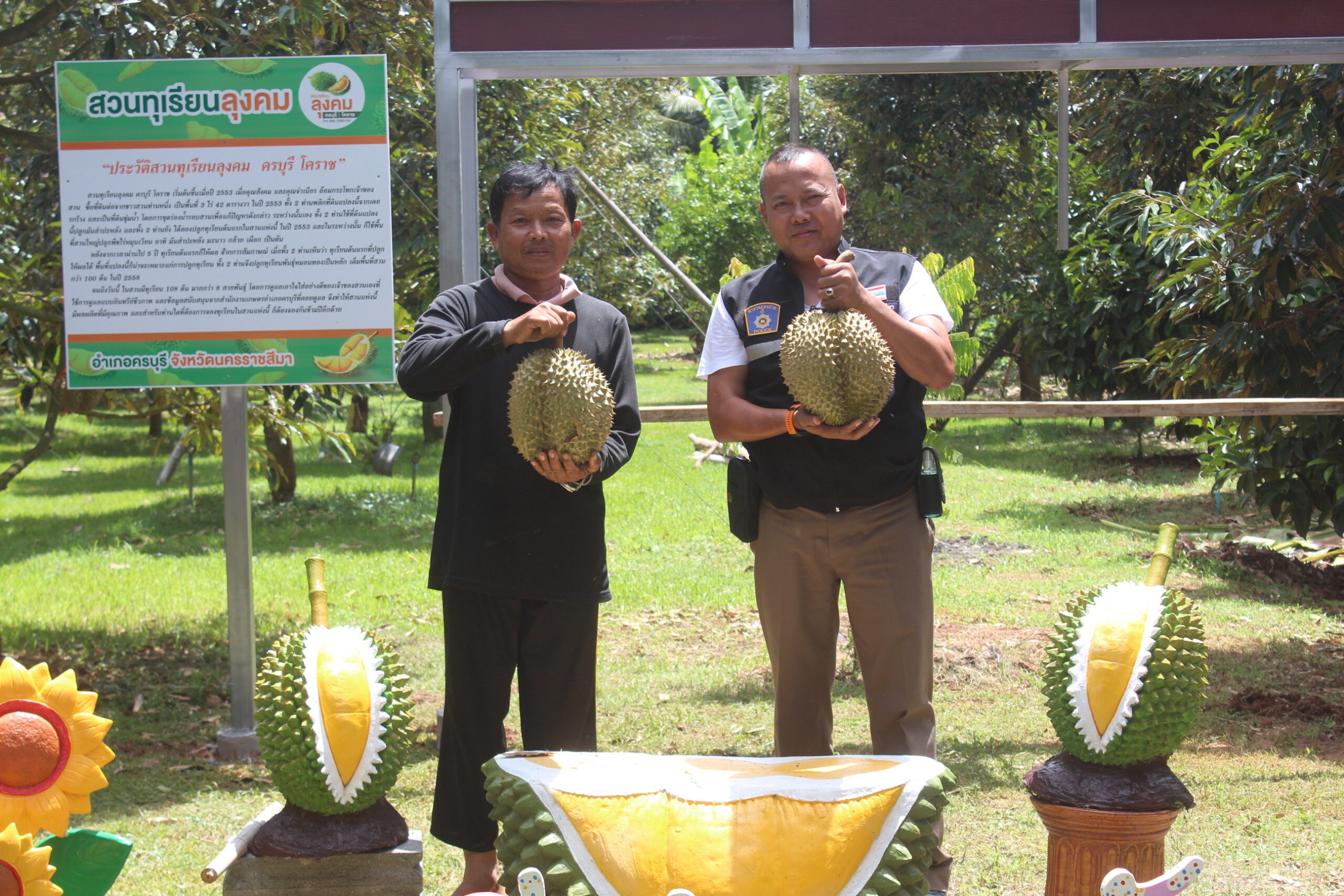ซึ่งภายในสวนของตนมีทุเรียนมากมายหลายชนิดเกือบ 10 สายพันธุ์ แต่ที่เริ่มให้ผลผลิตก็จะมีพันธุ์หมอนทองเป็นส่วนใหญ่ ขณะที่ทุเรียนอย่างพันธุ์มูซังคิง ที่ว่ากันว่าเป็นทุเรียนพันธุ์ที่อร่อยที่สุด ก็เริ่มให้ผลผลิตเป็นปีแรกเช่นเดียวกัน และในปีนี้ สำนักงานเกษตรอำเภอครบุรี มีแนวคิดที่จะสร้างความเชื่อถือให้แก่ประชาชนที่ต้องการจะรับประทานทุเรียนครบุรี ได้ทุเรียนที่ดีมีคุณภาพกลับไปบริโภคด้วยความมั่นใจ ว่าทุกลูกเป็นทุเรียนที่แก่จัด ได้มาตรฐาน ไม่มีทุเรียนอ่อนแทรก