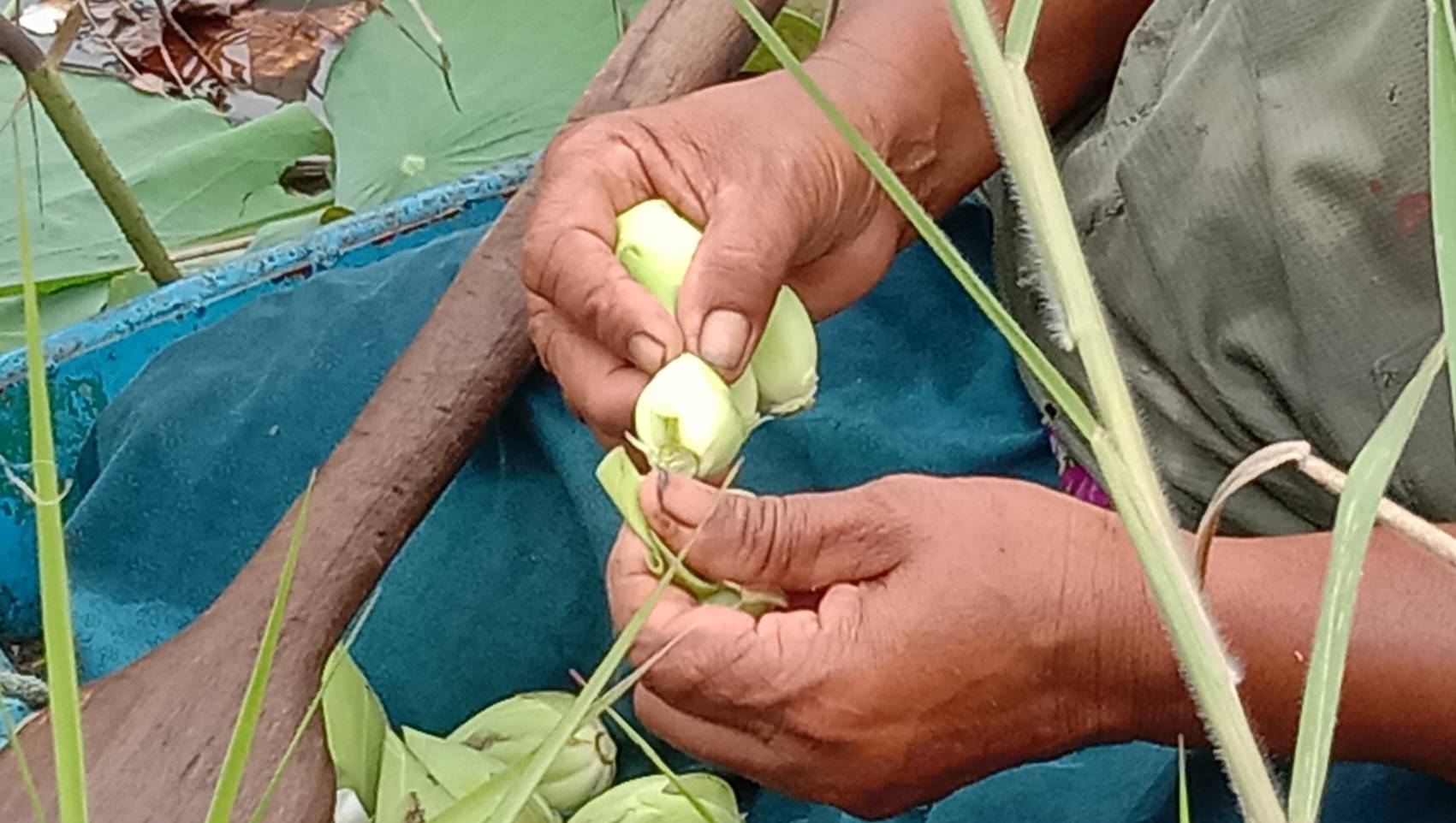 ชาวบ้านพิมายสู้วิกฤตน้ำมันแพง หันมาเก็บเกสรดอกบัวหลวง ส่งขายทำชา-ยาหอม สร้างรายได้งาม