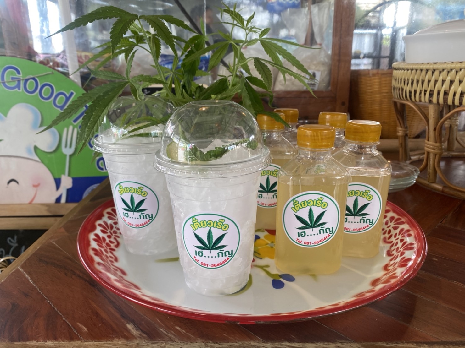 นอกจากเมนูก๋วยเตี๋ยวที่ส่วนผสมของกัญชาแล้วทางร้านยังมีเมนูเครื่องดื่มผสมกัญชาอีกด้วย เช่น น้ำแดงโซดาผสมกัญชา น้ำผึ้งมะนาวกัญชา และอีกเมนูหนึ่งที่กำลังได้รับความนิยม คือ น้ำมะกรูดกัญชา