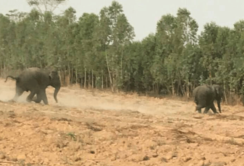 ผู้สื่อข่าวได้ลงพื้นที่ตรวจสอบ พร้อมกับผู้ช่วยผู้ใหญ่บ้านหมู่ที่ 6 และวัยรุ่นหนุ่มๆในหมู่บ้าน พบร่องรอยของช้างป่าบริเวณเลยโรงงานไฟฟ้า (โซล่าเซลล์)ไปประมาณ 200 เมตร พบรอยเท้าและต้นยูคาที่หักโค่นลงมาบนทางและตอนเช้าวันนี้ ( 4 ก.พ.) ผู้สื่อข่าวได้ลงพื้นที่สำรวจ พบนายสุพจน์ ดีเจริญ (เอก) ชาวบ้านที่ปลูกกระท่อมอยู่ในนาท้ายหมู่บ้าน เพื่อปลูกผักไว้ขาย