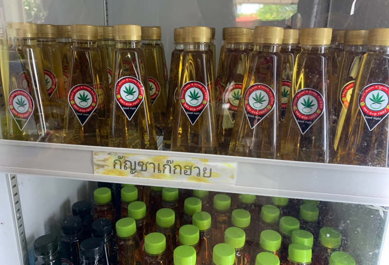 ซึ่งที่ร้านก๋วยเตี๋ยวเนื้อตุ๋นมาลองกัญ บริเวณหน้าวัดทุ่งสว่าง ต.ในเมือง อ.เมือง จ.นครราชสีมา ซึ่งเป็นร้านก๋วยเตี๋ยวที่มีน้ำซุปใส่กัญชาเป็นส่วนผสม และนอกจากเมนูก๋วยเตี๋ยวแล้วทางร้านยังมีเมนูอาหารเครื่องดื่ม และผลิตภัณฑ์ที่มีส่วนผสมของกัญชาอีกหลายรายการ เช่น อาหารตามสั่ง หม้อไฟหมูตุ๋นกัญชา ชาเขียวกัญชา บราวนี่กัญชา น้ำสมุนไพรกัญชา เป็นต้น สำหรับภลิตภัณฑ์ที่ทางร้านมีจำหน่ายก็ ชากัญชา สบู่กัญชา เป็นต้น