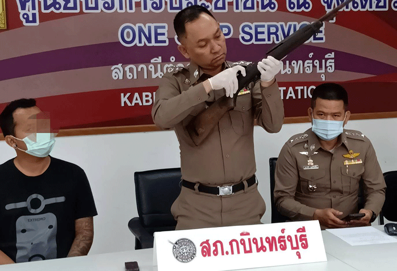 สภ.กบินทร์บุรี แถลงข่าวจับกุมอาวุธสงครามปืน คาร์บิน (ปสบ.87) จำนวน 1 กระบอก เจ้าตัวอ้างเพื่อนนำมาฝากให้เก็บเอาไว้