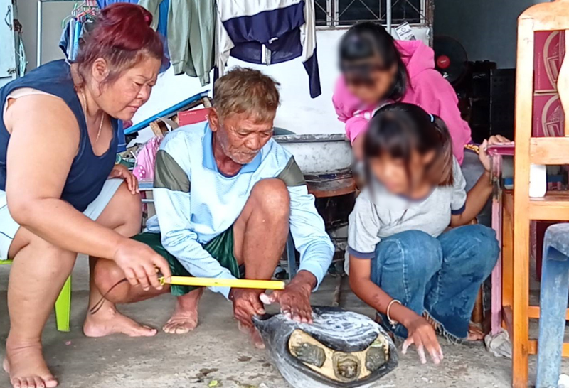 จากการสอบถาม นางกุ่ยฯเจ้าของเต่าที่ได้มา บอกว่าเมื่อคืนนี้ตนและสามีกลับมาจากทำธุระนอกบ้านโดยขี่รถจักรยานยนต์พ่วงข้างสามีเป็นคนขับ ส่วนตนนั่งมาด้านข้างรถพ่วงพอมาถึงระหว่างทางตนได้มองเห็นเต่าตัวขนาดใหญ่อยู่กลางถนน