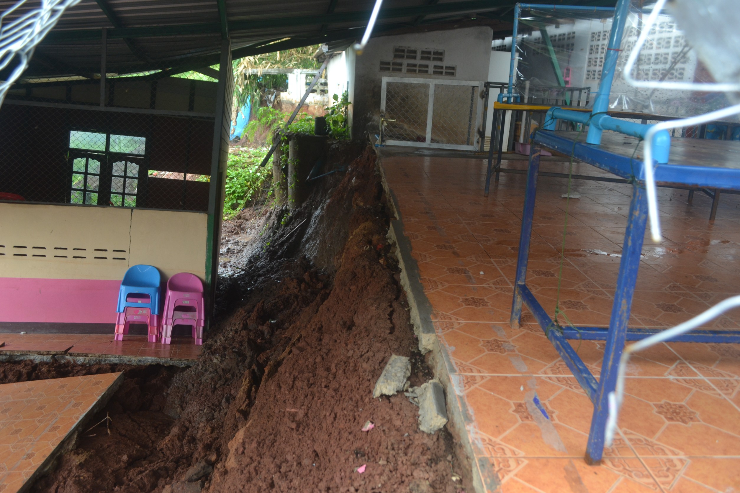 ฝนถล่มดินสไลด์ศูนย์เด็กเล็กได้รับความเสียหาย