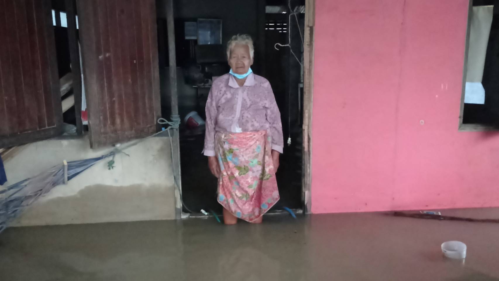 ยายวัย 82 เดือดร้อนน้ำท่วมบ้านไม่มีที่นอน