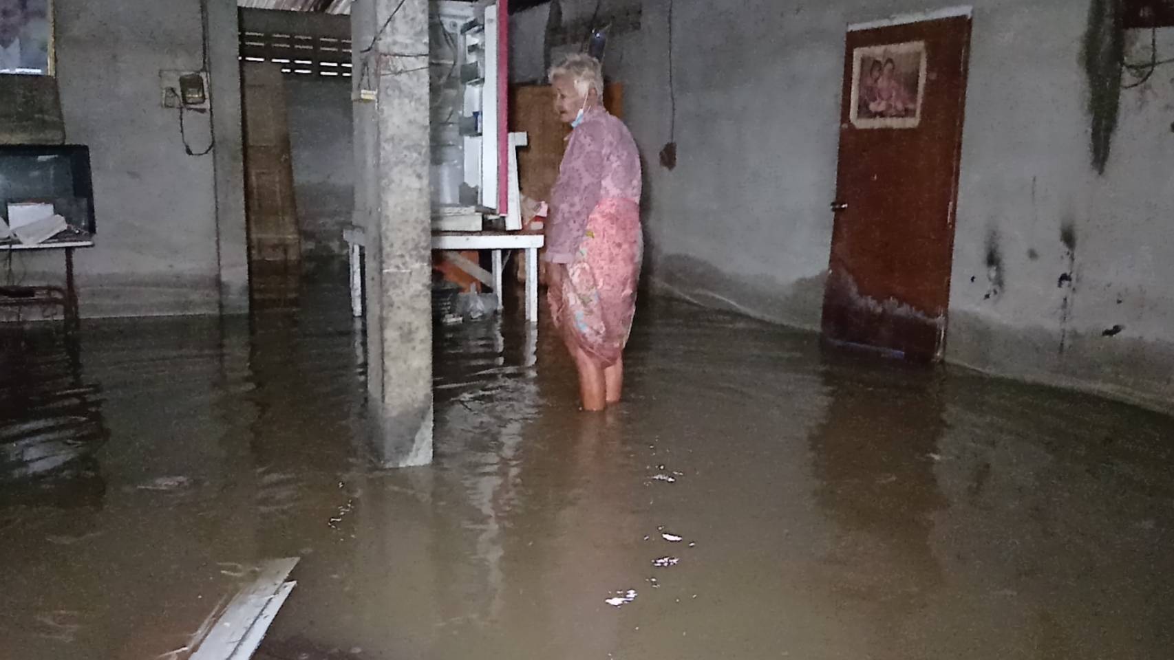น้ำท่วมบ้านยายวัย 82 ปี หลังฝนตกทั้งวันทั้งคืน ไหลเข้าบ้าน ท่วมสูงกว่า 40 เซนติเมตร ไม่มีที่นอน-ข้าวของเสียหาย วอนเร่งช่วยเหลือ