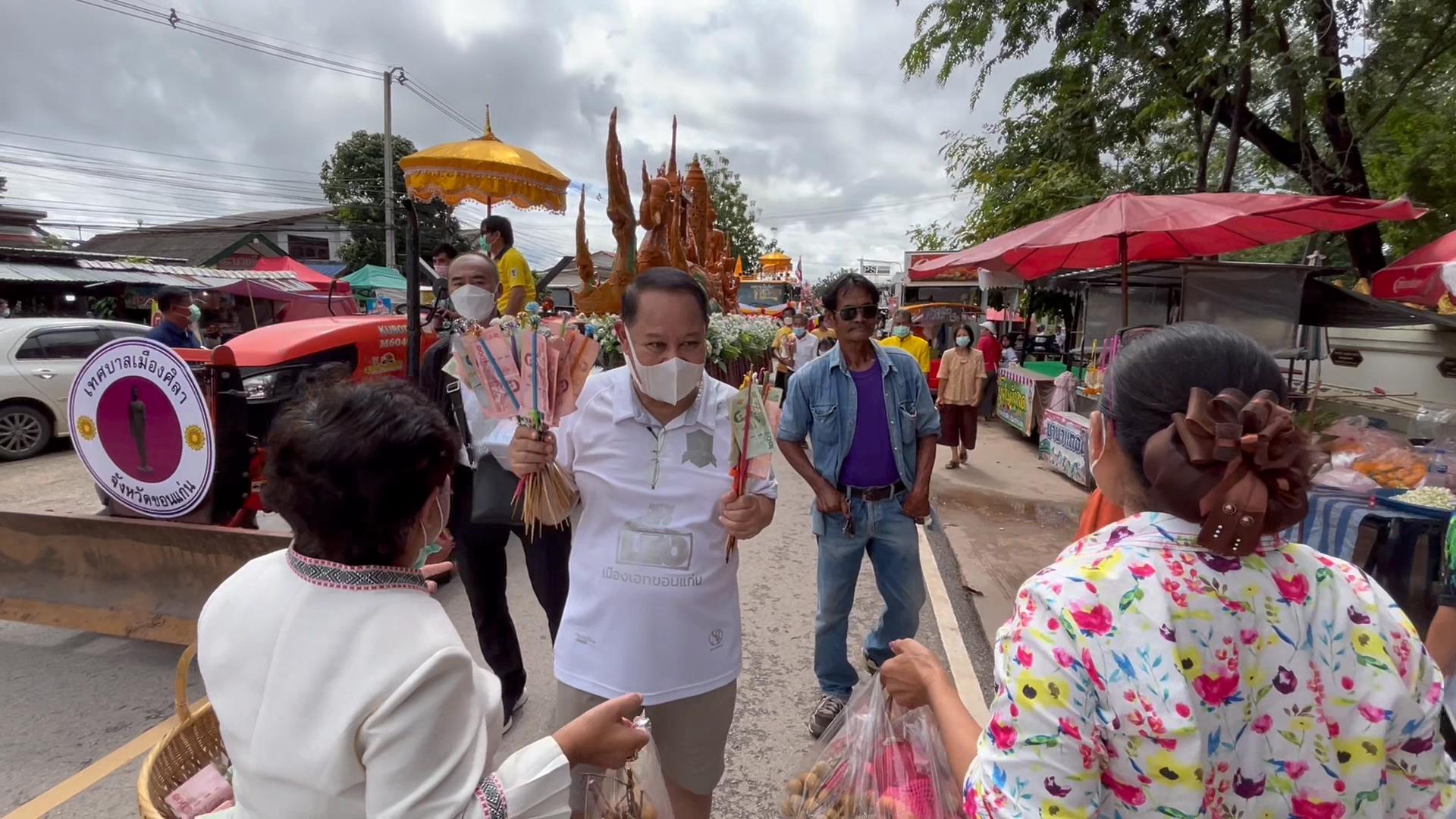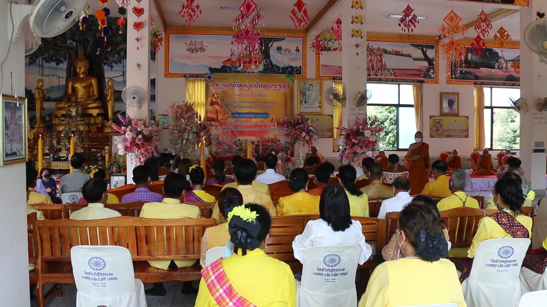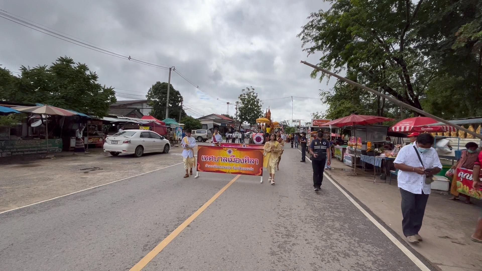 โดยเฉพาะที่วัดสว่างสุทธาราม ม.2 บ.หนองกุง ต.ศิลา อ.เมือง จ.ขอนแก่น ซึ่งคนในชุมชน ร่วมกับเทศบาลเมืองศิลา นำโดย นายเอกราช ช่างเหลา ส.ส.ระบบบัญชีรายชื่อพรรคภูมิใจไทย,นายวัฒนา ช่างเหลา ส.ส.ขอนแกน เขต 2 พรรคภูมิใจไทย,นายพิทักษ์ชน ช่างเหลา ส.อบจ.ขอนแก่น และนายไพรัตน์ ทวีวาร นายกเทศมนตรีเมืองศิลา ได้นำคณะผู้บริหาร,สมาชิกสภาฯ,ผู้นำชุมชนในเขต ต.ศิลา ร่วมกันแท่ต้นเทียนพรรษาและเครื่องไทยธรรมไปโดยรอบหมู่บ้าน ก่อนที่จะร่วมประกอบพิธีทอดถวายให้กับพระภิกษุสงฆ์ โดยมีพระเถรานุเถระ พระภิกษุ สามเณร ร่วมเจริญพระพุทธมนต์ กล่าวสัมโมทนียกถา และอนุโมทนารับต้นเทียน เครื่องสังฆทานและจตุปัจจัยต่างๆที่ชาวชุมชนได้มาทอดถวายเนื่องในเทศกาลวันเข้าพรรษาปีนี้