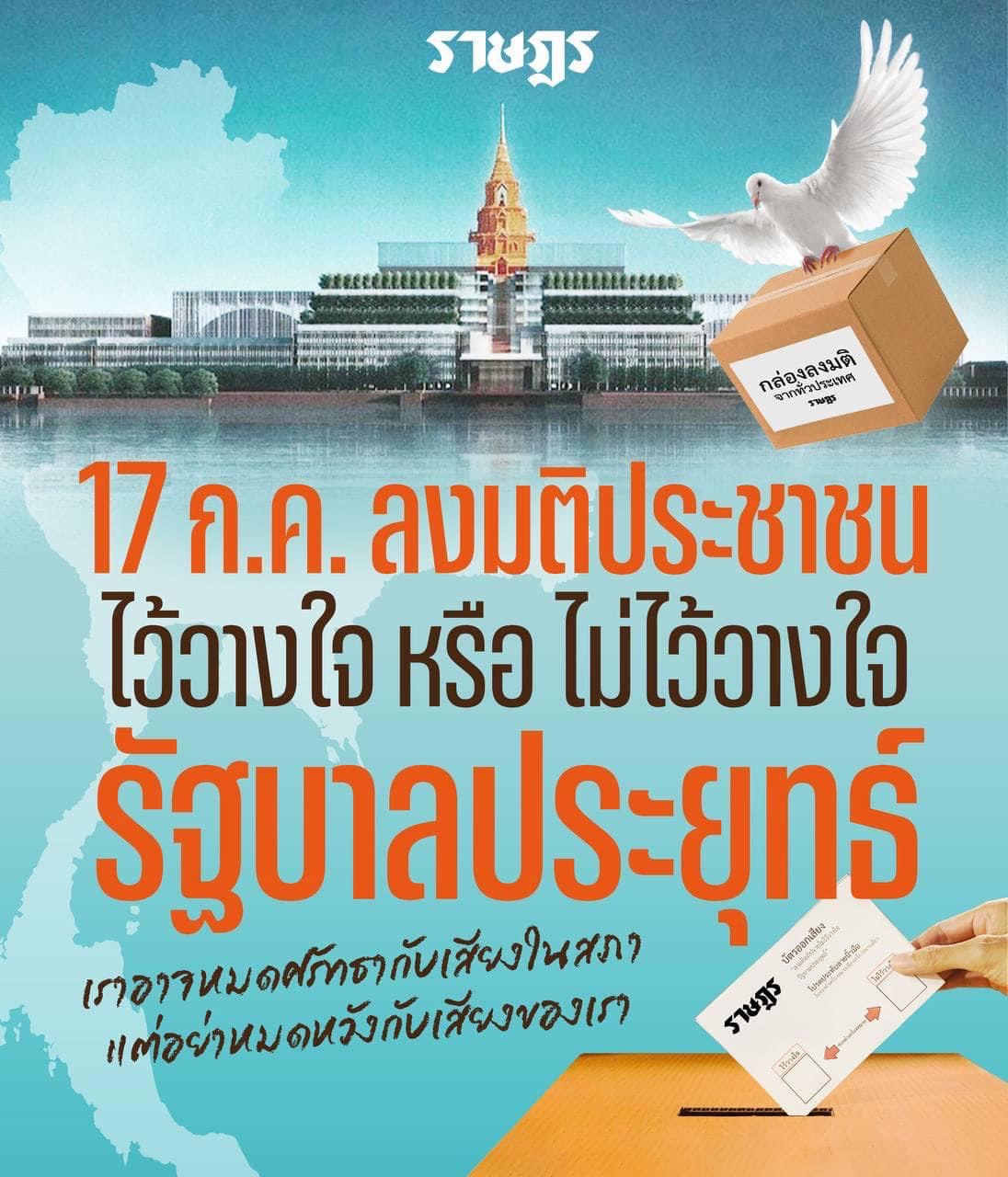 ผู้สื่อข่าวรายงานว่า ทางเพจ KoratMovement ได้มีการโพสต์ภาพและคลิปวีดีโอขณะที่เจ้าหน้าที่มารื้อถอนเต้นท์จุดลงชื่อร่วมลงมติประชาชน ไว้วางใจ หรือ ไม่ไว้วางใจ” รัฐบาลประยุทธ์ ” ที่บริเวณข้างลานย่าโม โดยในช่วงเวลา 13.00 น.ได้มีการไลฟ์สดขณะที่เจ้าหน้าที่ได้เข้ามารื้อถอนจุดรับลงชื่อ โดยข้อความในโพสต์ระบุว่าเจ้าหน้าที่เข้ารื้อจุดโหวตไม่ไว้วางใจประยุทธ