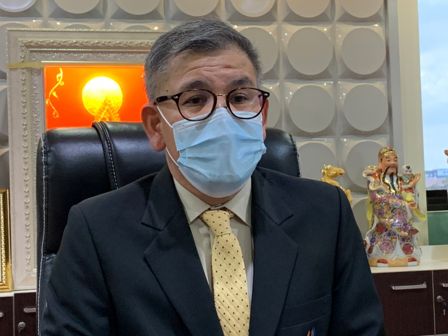 ซึ่งตอนนี้สถานการณ์เตียงของผู้ป่วยติดเชื้อโควิด-19 ของโรงพยาบาลมีผู้ป่วยที่เข้ารับรักษาตัวอยู่ประมาณ 80 เตียง ส่วนใหญ่จะเป็นผู้ป่วยสีเหลืองคือมีอาการปอดอักเสบเพียงเล็กน้อย อีกส่วนหนึ่งคือผู้ป่วยสีแดงที่จำเป็นต้องใช้เครื่องช่วยหายใจในการรักษาซึ่งมีอยู่เฉลี่ยประมาณ 10-15 คน ซึ่งจะมีผู้ป่วยสีเหลืองและสีแดงหมุนเวียนเข้ารับการรักษาประมาณ 5-10 คนต่อวัน ซึ่งจะประเมินอาการจากการรักษาถ้ารักษาจนประเมินได้ว่าเป็นผู้ป่วยสีเขียวแล้วทางโรงพยาบาลจะอนุญาตให้กลับไปพักษาตัวต่อที่บ้านได้ เพื่อเป็นการบริหารจัดการเตียงผู้ป่วยโควิด-19 ให้เพียงพอหากการระบาดในระลอกใหม่ ซึ่งจากนโยบาย “เจอ แจก จบ”