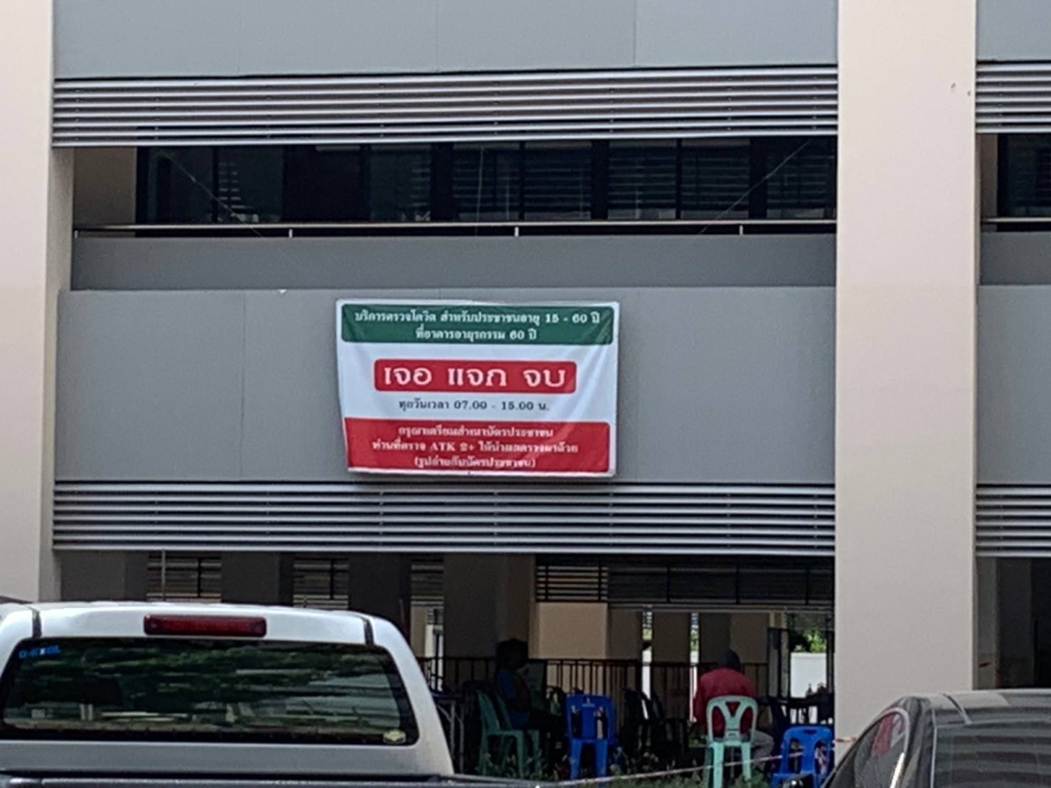สำหรับผู้ป่วยในคือผู้ป่วยสีเหลืองและสีแดงเป็นผู้ป่วยในกลุ่ม 608 และผู้ป่วยที่มีอาการปอดอักเสบทางโรงพยาบาลฯจะนำเข้าสู่ระบบการรักษา โดยตลอดระยะเวลาที่ได้เริ่มดำเนินโครงการ “เจอ แจก จบ” โรงพยาบาลมหาราชนครราชสีมา ได้ทำการคัดกรองผู้ป่วยไปแล้วกว่า 13,000 ราย โดยปัจจุบันนี้โรงพยาบาลมหาราชฯ มีประชาชนที่มาตรวจ ATK และเข้าระบบการรักษาตามนโยบาย “เจอ แจก จบ” เฉลี่ยแล้วประมาณ 100 คนต่อวัน ทั้งในเวลาและนอกเวลาทำการ