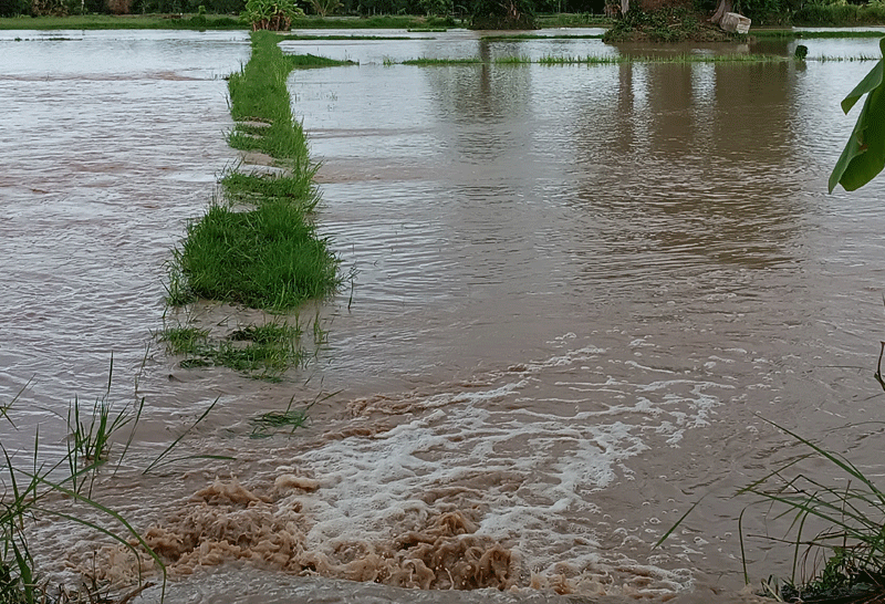 โดยนาข้าวส่วนใหญ่เพิ่งเริ่มเพาะปลูกได้ไม่นาน ส่งผลให้ต้นกล้าที่เพิ่งงอกขึ้นมา ต้องจมอยู่ใต้น้ำ ขณะที่ฝนยังคงตกลงมาอย่างต่อเนื่องอย่างไม่มีทีท่าว่าจะหยุด ซึ่งเกษตรกรต่างหวั่นใจว่า หากฝนตกต่อเนื่องอย่างนี้ อาจจะทำให้ต้นกล้าทั้งหมดได้รับความเสียหายได้