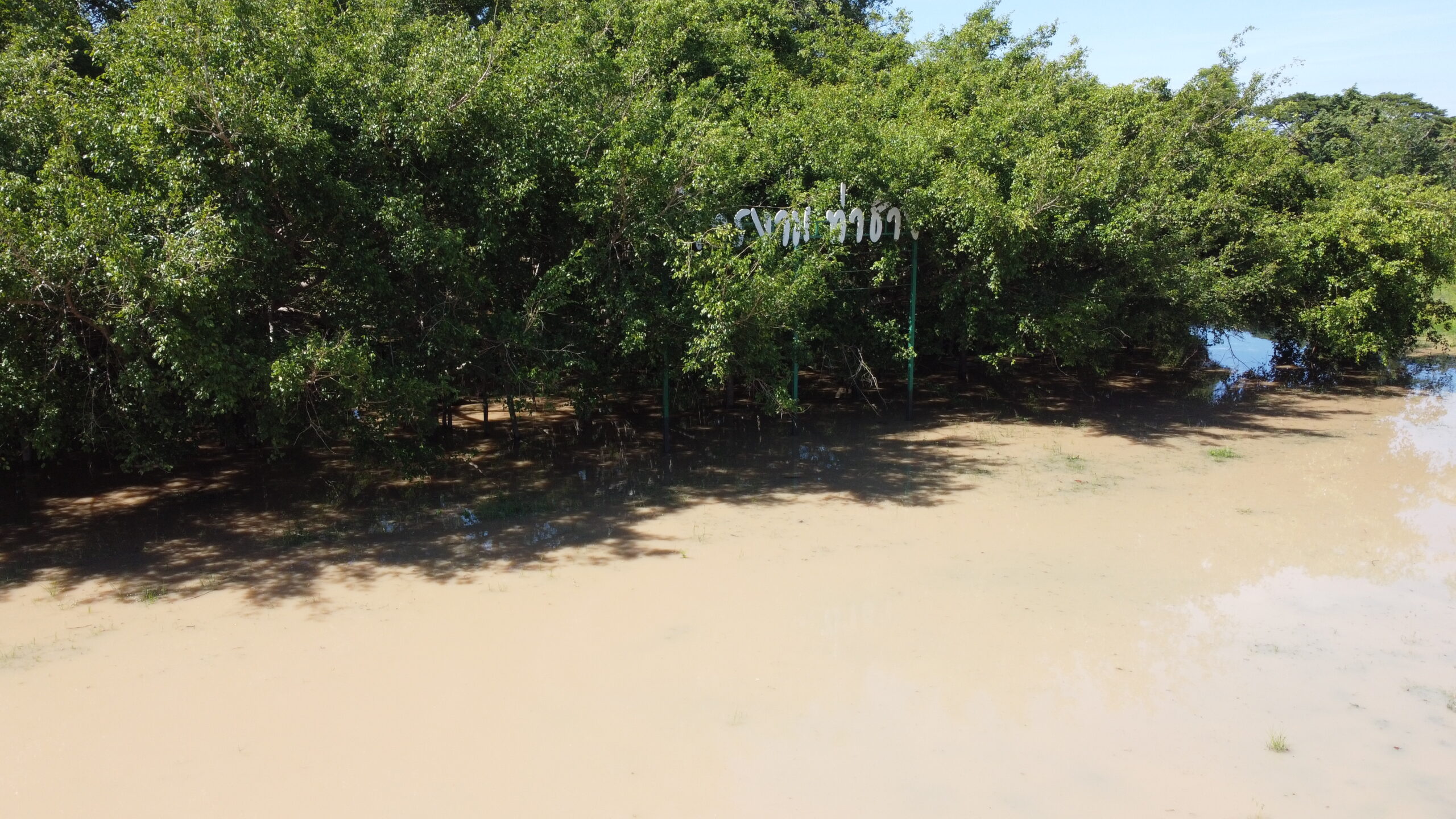 จากภาพมุมสูงจะเห็นว่า ปริมาณน้ำมูลได้โอบล้อมต้นไทรงามยักษ์ ทำให้นักท่องเที่ยวไม่สามารถเดินลงไปเที่ยวชม และถ่ายรูปกับต้นไทรงามยักษ์ได้