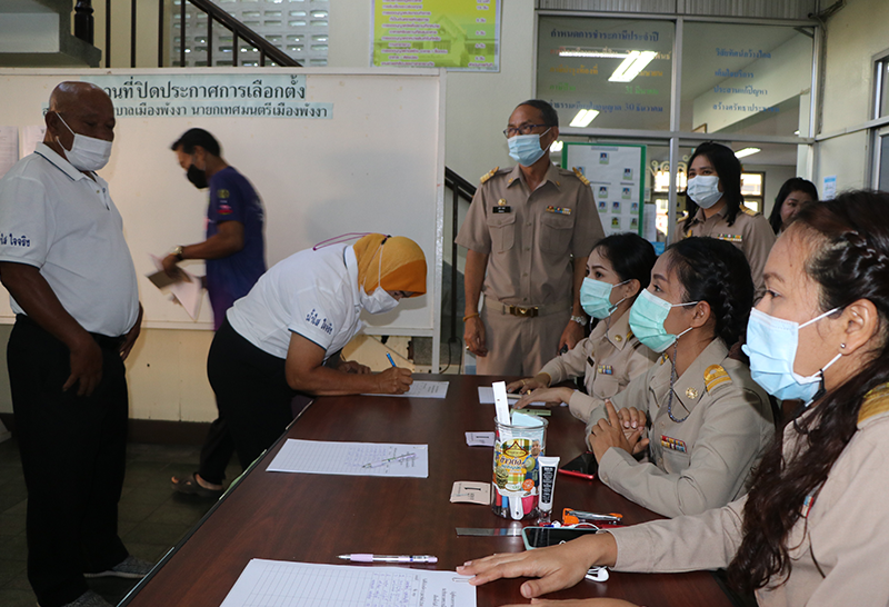 ที่บริเวณสำนักงานเทศบาลเมืองพังงา เจ้าหน้าที่ได้เตรียมการรับสมัคร สมาชิกสภาเทศบาล และ นายกเทศมนตรี ก่อนเวลา 08.30 น. พร้อมทั้งจัดการรับสมัครโดยเน้นหนักการป้องกันการแพร่เชื้อไวรัสโควิด19 โดยบรรยากาศรับสมัคร มีผู้เดินทางเข้าร่วมการรับสมัคร สมาชิกสภาเทศบาล และ นายกเทศมนตรี เทศบาลเมืองพังงา ครั้งนี้แบ่งเป็น เขตรับเลือกตั้งจำนวน 3 เขต มีผู้สมัครตำแหน่งนายกเทศมนตรีเทศบาลเมืองพังงา จำนวน 2 ราย คือ นางสุธปัญ หิโตปกรณ์ อาชีพนักธุรกิจ ซึ่งเป็นภรรยา นายอภิเดช หิโตปกรณ์ อดีตนายกเทศมนตรีเทศบาลเมืองพังงา ส่วนอีกคนคือ นายชูโชติ โกยกุล อดีตนายเทศมนตรีเทศบาลเมืองพังงา แชมป์เก่าสมัยที่ผ่านมา โดยได้นำผู้สมัครสมาชิกสภาเทศบาลเมืองพังงา ครบทุกเขต นอกจากนี้ยังมีผู้สมัครสมาชิกสภาเทศบาลเมืองพังงาในกลุ่มอิสระอีกจำนวน 4 คน ทำให้วันแรกมีผู้สมัครสมาชิกสภาเทศบาลเมืองพังงา จำนวนทั้งสิ้น 40 คน ได้เดินทางเข้าลงชื่อก่อนเวลารับสมัคร กระทั่งช่วงเวลารับสมัคร 08.30 น. ผู้สมัครทั้งหมดเข้ารับฟังการชี้แจงจาก นายจงรัก ผิวขำ ปลัดเทศบาลเมืองพังงา ฐานะ ผอ.กกต.ประจำเทศบาลเมืองพังงา โดยมีการจับสลากและจัดลำดับผู้สมัคร ซึ่งมีปัญหาชุลมุนเล็กน้อยกรณีผู้สมัครกลุ่มอิสระไม่ยินยอมให้ผู้สมัครแบบทีมได้เรียงเบอร์ และขอให้มีการจับสลากทั้งหมดในเขตที่กลุ่มอิสระได้ลงสมัคร จากนั้นได้มีการชี้แจงและทำความตกลงจนสามารถทำความเข้าใจกันได้โดยให้กลุ่มอิสระเรียงหมายเลขตามที่ลุ่มอิสระเรียกร้อง จนได้ข้อยุติ และสามารถนำเอกสารเข้าลงสมัครได้ในที่สุด