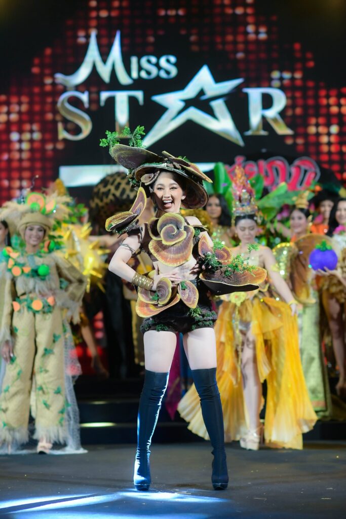 ซึ่งเห็ดหลินจือ ช่วยในการรักษาโรคความดันสูงและต่ำ และโรคหัวใจ โรคน้ำตาลในเลือดสูงและสรรพคุณอีกมากมาย ชุดที่สาวงามสวมใส่จะออกแบบถึงลักษณะของเห็ดหลินจือ ที่มีเอกลักษณ์เฉพาะตัวและถ่ายทอดออกมาด้วยความสนุก น่ารักสดใส สไตล์เด็กดอยจาก