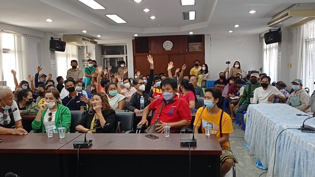 โดยนายสุนทร นานกลาง ชาวบ้านที่เดือดร้อนรายหนึ่งในชุมชน เสนอให้จ่ายเท่ากันทุกราย ซึ่งทางเทศบาลฯ ได้รับเรื่องข้อเรียกร้องต่างๆ เอาไว้ และจะเร่งตรวจสอบดูว่าตรงกับหลักเกณฑ์ที่ทางราชการกำหนดไว้หรือไม่ เพื่อส่งต่อความช่วยเหลือโดยเร็ว ซึ่งจะได้นำมาแจ้งให้ชาวบ้านทุกทราบอีกครั้ง ทำให้ชาวบ้านที่มาเรียกร้องพอใจ โดยใช้เวลากว่า 1 ชั่วโมงจึงยุติการประชุมฯ