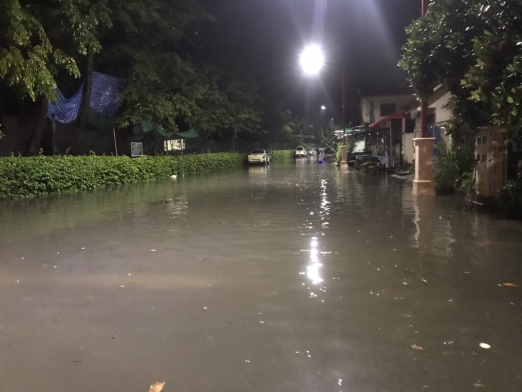 ทำให้ตื้นเขิน น้ำฝนที่ตกลงมา จึงไหลลงท่อได้ช้า ในขณะเดียวกันน้ำที่ไหลลงท่อระบายน้ำ ก็ไหลระบายได้ช้า ซึ่งคาดว่า หากไม่มีฝนตกลงมาซ้ำอีก ประมาณช่วงสายๆ ในวันนี้ ปริมาณน้ำที่ท่วมขังรอการระบาย จะแห้งเข้าสู่สภาวะปกติ