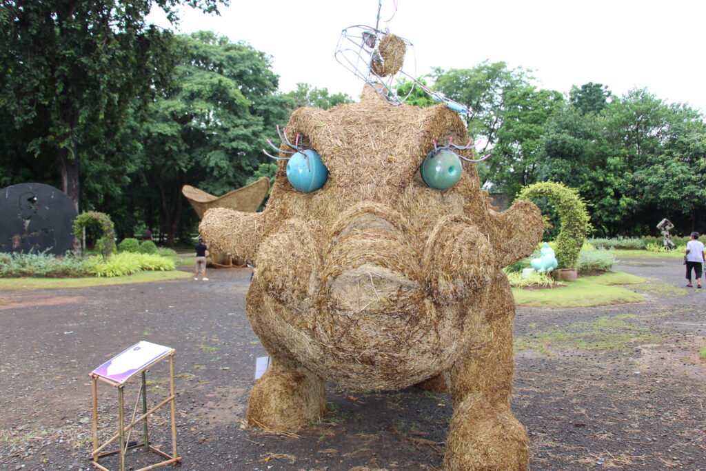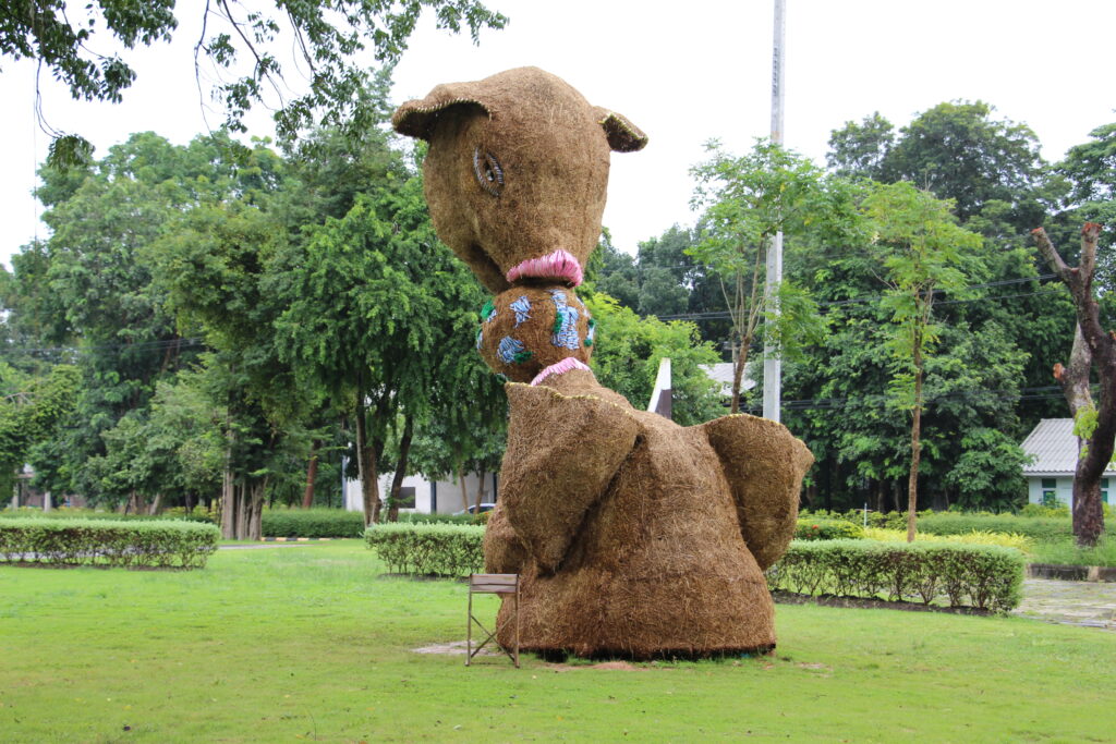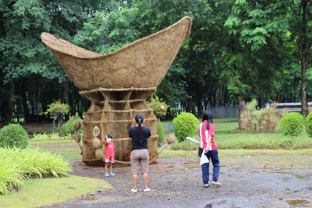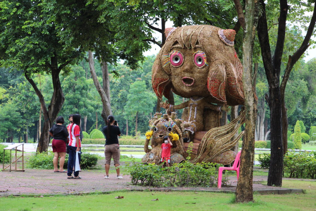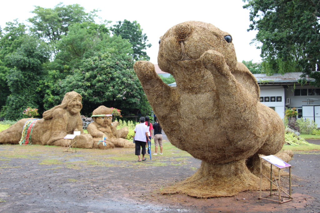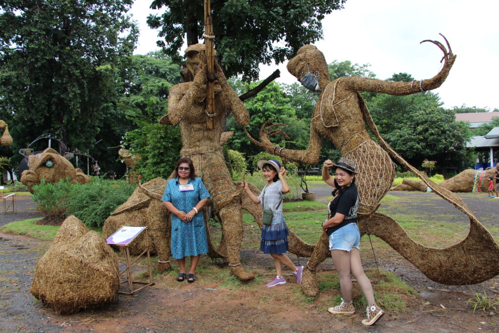 นำมาสร้างสรรค์ผลงานเป็นรูปต่าง ๆ ทั้งสัตว์ การ์ตูน และการแสดงศิลปะพื้นบ้าน บางผลงานมีความสูงกว่า 4เมตร ซึ่งงานได้มีการเปิดให้เข้าชมมา 10 กว่าวันแล้ว นักท่องเที่ยวก็ยังแห่ชมหุ่นฟางกันอย่างต่อเนื่องโดยส่วนใหญ่จะมากันเป็นกลุ่มหรือคณะ บ้างก็มาเป็นครอบครัวพ่อแม่ลูก ทำให้บรรยากาศดูคึกคักอย่างมาก