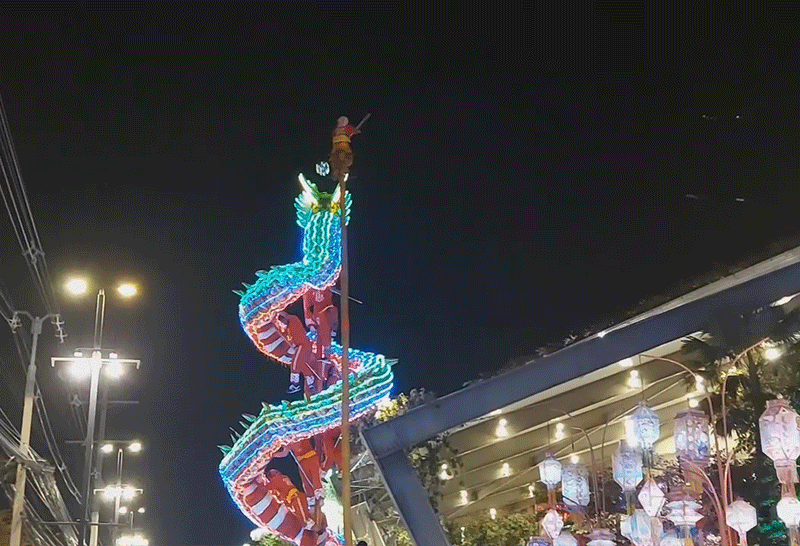 ตรุษจีนโคราช คึกคัก เชิดพญามังกรทอง ยาว 45 เมตร ประดับไฟ LED กว่า 2,021 ดวง สุดตระการตา