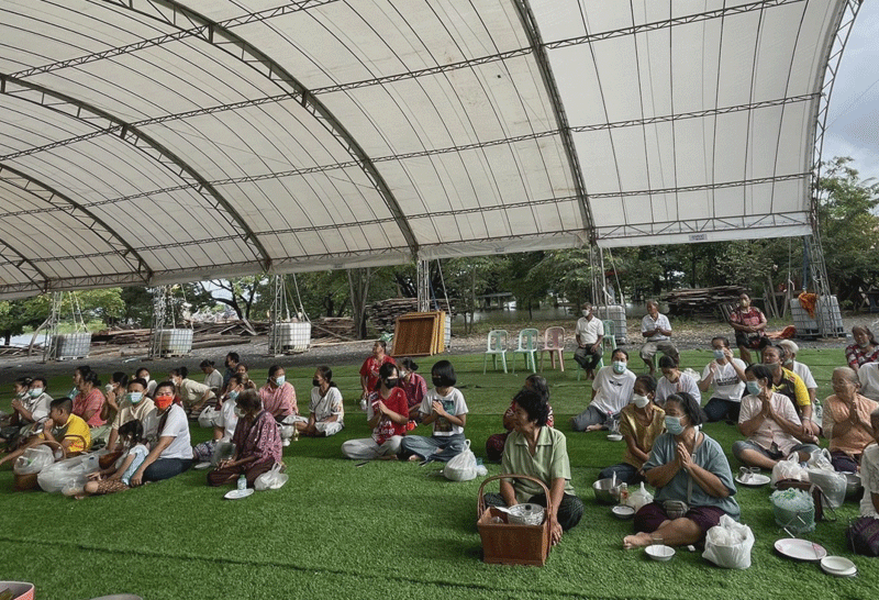 จึงใช้รถไถนาขาดใหญ่ใส่พ่วงท้าย ชักชวนเพื่อนบ้าน เดินทางร่วมทางบุญไปด้วยกัน โดยนั่งโดยสารเข้าไปจนถึงวิหารแดง ซึ่งทางวัดพลายชุมพลใช้ในการประกอบพิธีทางศาสนาเนื่องในวันออกพรรษาและตักบาตรเทโว