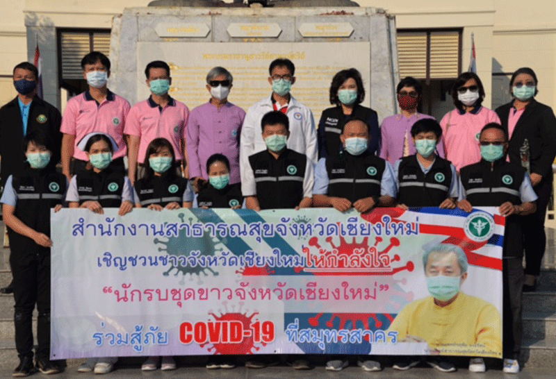 สืบเนื่องจากสถานการณ์แพร่ระบาดของโรคติดเชื้อไวรัสโควิด-19 รอบใหม่ พบผู้ติดเชื้อจำนวนมากในจังหวัดสมุทรสาคร ทำให้ทีมแพทย์ พยาบาล และบุคลากรทางการแพทย์จังหวัดสมุทรสาคร ต้องเผชิญกับภาวะวิกฤตในการคัดกรองกลุ่มเสี่ยง และการรักษาพยาบาล ผู้ป่วยที่มีมากขึ้นทุกวัน ทางสำนักงานสาธารณสุขจังหวัดเชียงใหม่ จึงได้ส่งอาสาสมัครทางการแพทย์จังหวัดเชียงใหม่ “นักรบชุดขาวจังหวัดเชียงใหม่ ทีมที่ 1 “ลงพื้นที่ปฏิบัติหน้าที่เป็นการเสริมกำลัง ในจังหวัดสมุทรสาคร เมื่อวันที่ 8 ก.พ. ที่ผ่าน