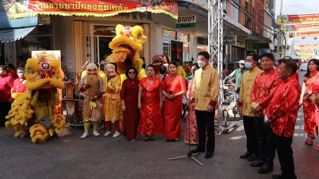 ที่ ถนนศรีพลรัตน์ หรือสี่แยกกาแฟ เขตเทศบาลตำบลเมืองปัก อำเภอปักธงชัย จังหวัดนครราชสีมา นายสยาม ศิริมงคล ผู้ว่าราชการจังหวัดนครราชสีมา พร้อมด้วยนายกิตติศักดิ์ พันธ์เกษม ประธานคณะกรรมการจัดงานและคนไทยเชื้อจีน ประชาชนในพื้นที่อำเภอปักธงชัย ร่วมกันเปิดงานสมโภช ปุงเถ่ากงม่า ปักธงชัย ประจำปี 2565 หรืองานงิ้วอำเภอปักธงชัย