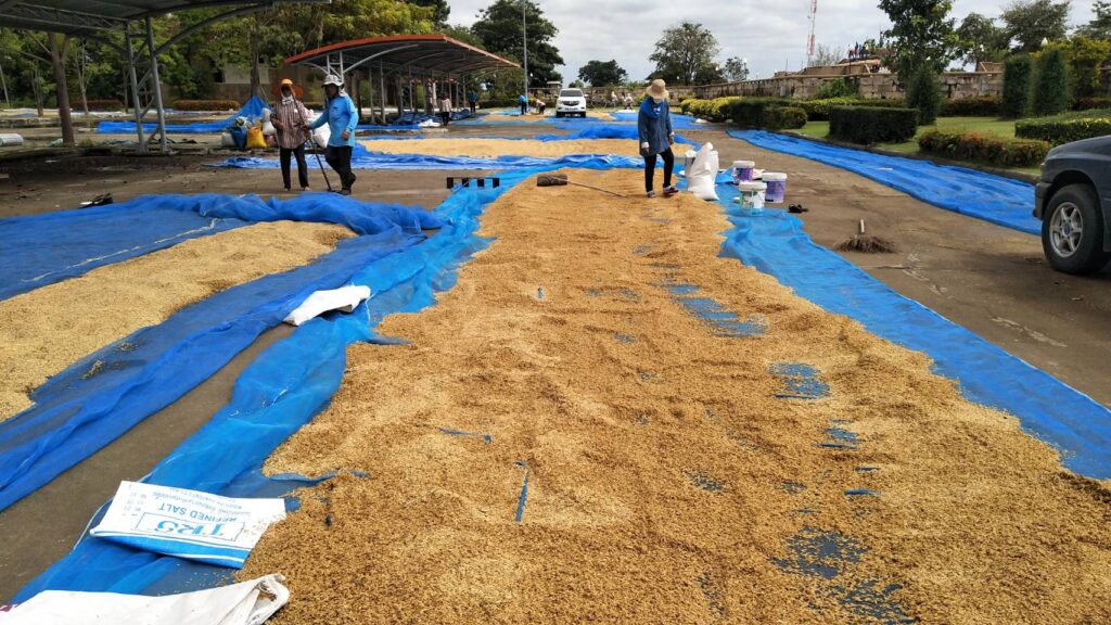 ผู้สื่อข่าวรายงานว่า ฝนที่ตกลงมาในช่วงนี้ ได้สร้างความลำบากให้กับชาวนา ตำบลสัมฤทธิ์ อำเภอพิมาย จังหวัดนครราชีมา ส่งผลทำให้ชาวนาหลายรายได้รับความเดือดร้อนหนัก ข้าวเปลือกหอมมะลิที่นำมาตากแดดเพื่อให้ข้าวเปลือกแห้ง ไม่ให้มีความชื้น ซึ่งตากไว้บนลานปูนที่สาธารณะ ด้านหน้าอนุสรสถานวีรกรรมทุ่งสัมฤทธิ์ ตำบลสัมฤทธิ์ อำเภอพิมายนั้น เมื่อฝนตกลงมาทำให้ข้าวเปลือกที่ตากแดดไว้ เปียกชื้น จนต้องเร่งหาแผ่นพลาสติกมาคลุม บางรายหาแผ่นพลาสติกมาคลุมไม่ทันทำให้ข้าวเปียกน้ำฝนต้องใช้เวลาในการตากแดดอีกหลายวัน