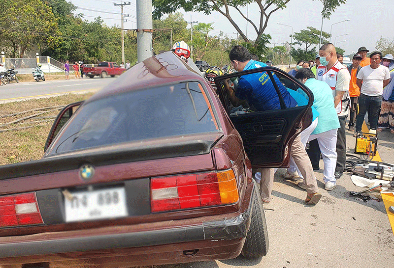 ลำปาง สาว สตง. ซิ่งเก๋งชนเสาไฟฟ้า รถพังยับ เจ็บสาหัสก่อนไปเสียชีวิตที่ รพ.