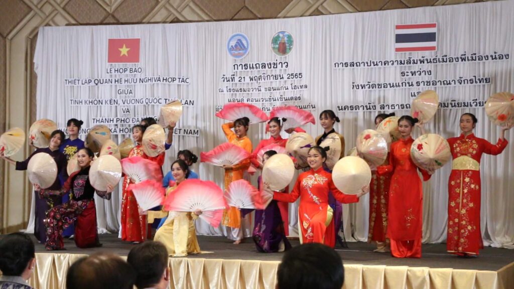 นายไกรสร กองฉลาด ผวจ.ขอนแก่น พร้อมด้วย นายชู ดุ๊ก ดง (Chu Duc Dung) กงสุลใหญ่สาธารณรัฐสังคมเวียดนามประจำจังหวัดขอนแก่น ร่วมแถลงข่าวผลความสำเร็จการลงนามความร่วมมือสถาปนาเมืองพี่เมืองน้องระหว่าง จ.ขอนแก่น ราชอาณาจักรไทย กับ นครดานัง สาธารณรัฐสังคมนิยมเวียดนาม โดยได้มีการลงนามความร่วมมือแบบทวิภาคีก่อนการประชุมผู้นำเขตเศรษฐกิจเอเปค ครั้งที่ 28 ซึ่งกำหนดจัดการประชุมขึ้นที่กรุงเทพฯระหว่างวันที่ 14-19 พ.ย.ที่ผ่านมา ท่ามกลางความสนใจจากนักธุรกิจ นักลงทุน คนไทยเชื้อสายเวียดนาม และหน่วยงานภาครัฐและภาคเอกชน