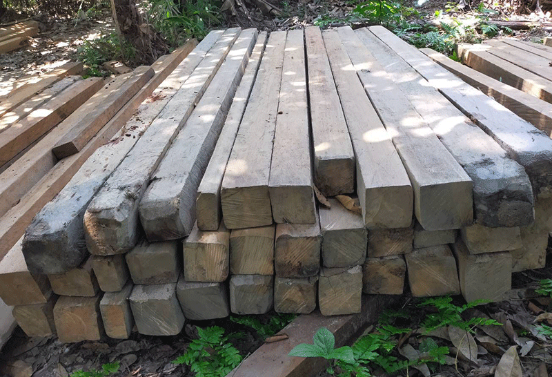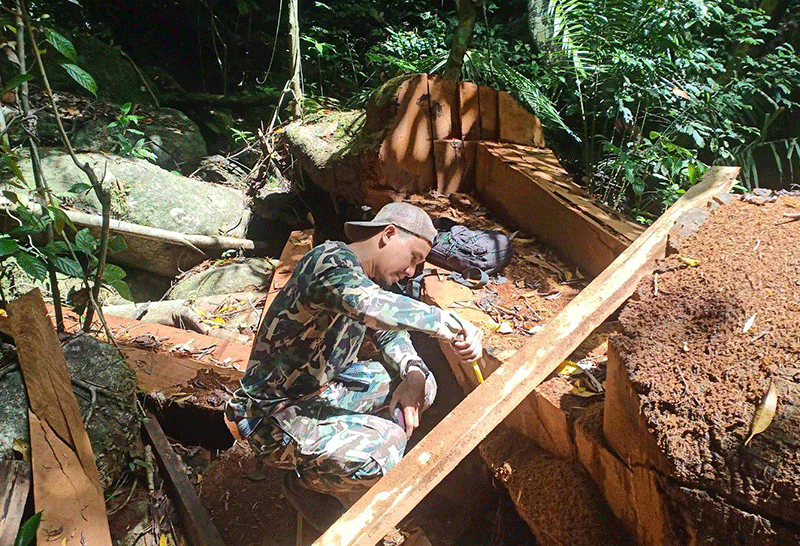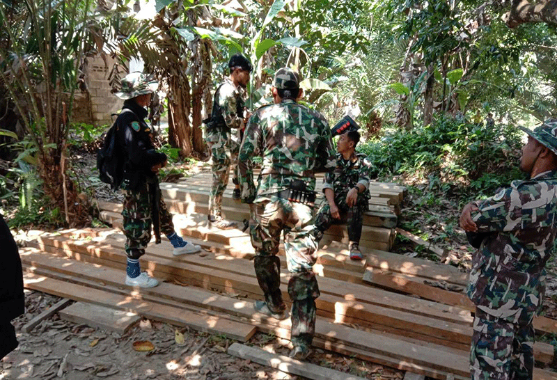เจ้าหน้าที่ผนึกกำลังบุกจับกุมผู้ลักลอบตัดไม้คาเครื่องเลื่อย บนเขาที่ศรีสาคร จ.นราธิวาส