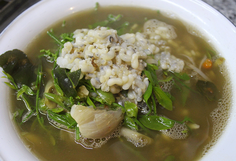 สำหรับร้านอาหารครัวผักหวานลานจันทร์ ครัวดาบเล็กนั้น เป็นร้านอาหารพื้นถิ่น มีอาหารพื้นบ้านตามฤดูกาลผสมผสานกับอาหารทั่วไป ทางร้านจะเปิดรับซื้อวัตถุดิบต่างๆ จากชาวบ้านในพื้นที่ เพื่อช่วยเหลือชาวบ้านให้มีรายได้ สร้างคุณภาพชีวิตให้ดีขึ้นด้วย ซึ่งอาหารตามฤดูกาลของชาวบ้านในพื้นที่อำเภอครบุรีช่วงนี้จะเป็นผักหวานและไข่มดแดง สามารถนำไปประกอบอาหารได้หลากหลายชนิด และที่ได้รับความนิยมอย่างมากก็คือ แกงผักหวานไข่มดแดง เป็นต้น