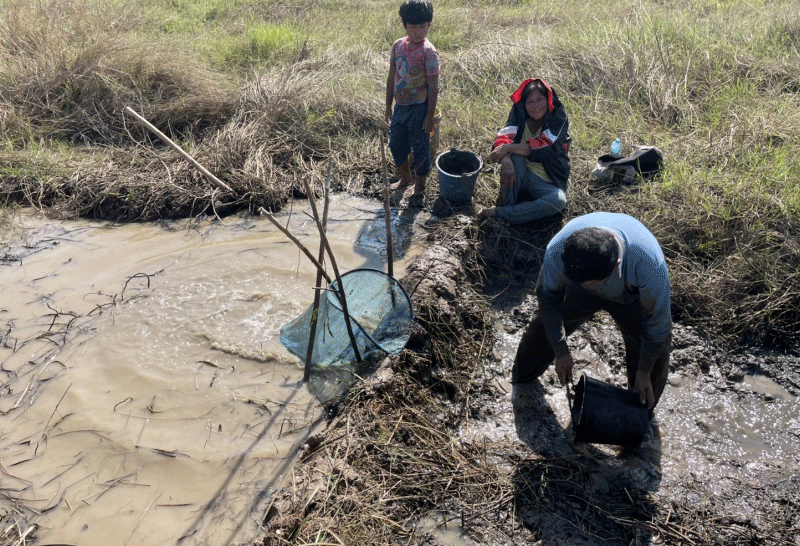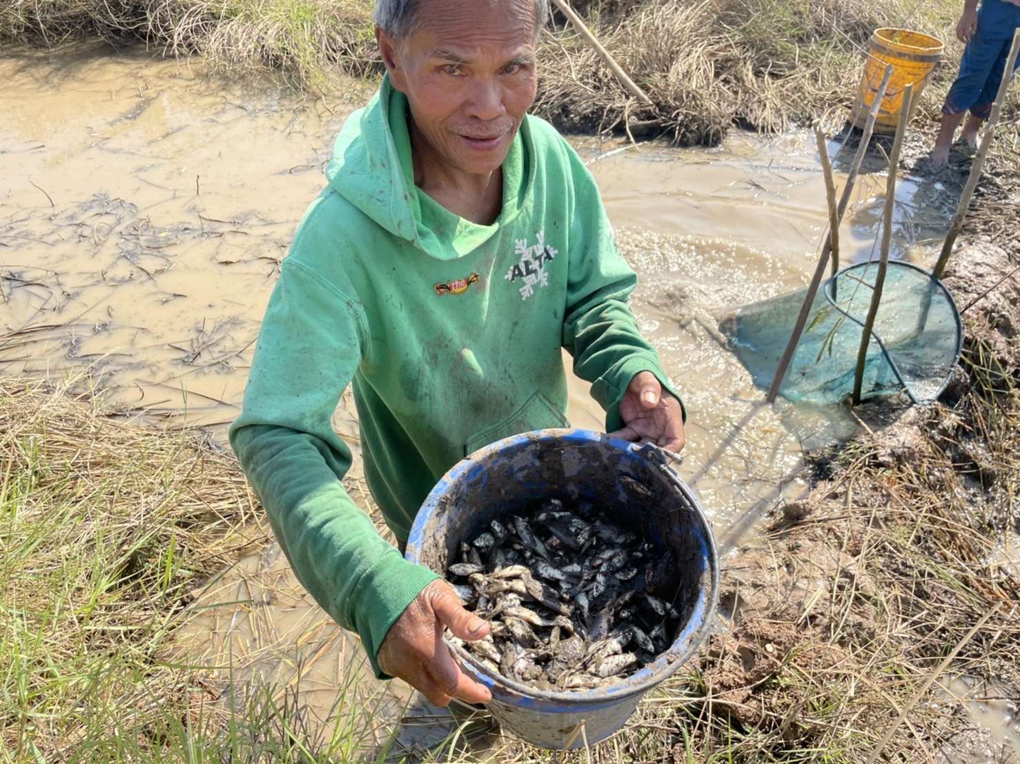 ผู้สื่อข่าวรายงานว่า ที่บริเวณกลางทุ่งนา ตำบลบัวใหญ่ อำเภอบัวใหญ่ จังหวัดนครราชสีมา มีชาวบ้านส่วนหนึ่งพร้อมเด็ก ๆ ในหมู่บ้าน อาศัยเวลาที่ว่างจากทำนา และอยู่ในช่วงเวลาที่เด็กๆ เองก็หยุดเรียน พลิกวิกฤตให้เป็นโอกาสด้วยการช่วยกันลงวิดน้ำหาปลา บริเวณกลางทุ่งนาที่มีน้ำท่วมขัง และที่กำลังแห้งขอด จากสภาพอากาศที่แห้งแล้งมานาน เพื่อหาจับสัตว์น้ำกลับไปทำเป็นอาหารรับประทาน ลดภาระค่าใช้จ่ายภายในครอบครัว