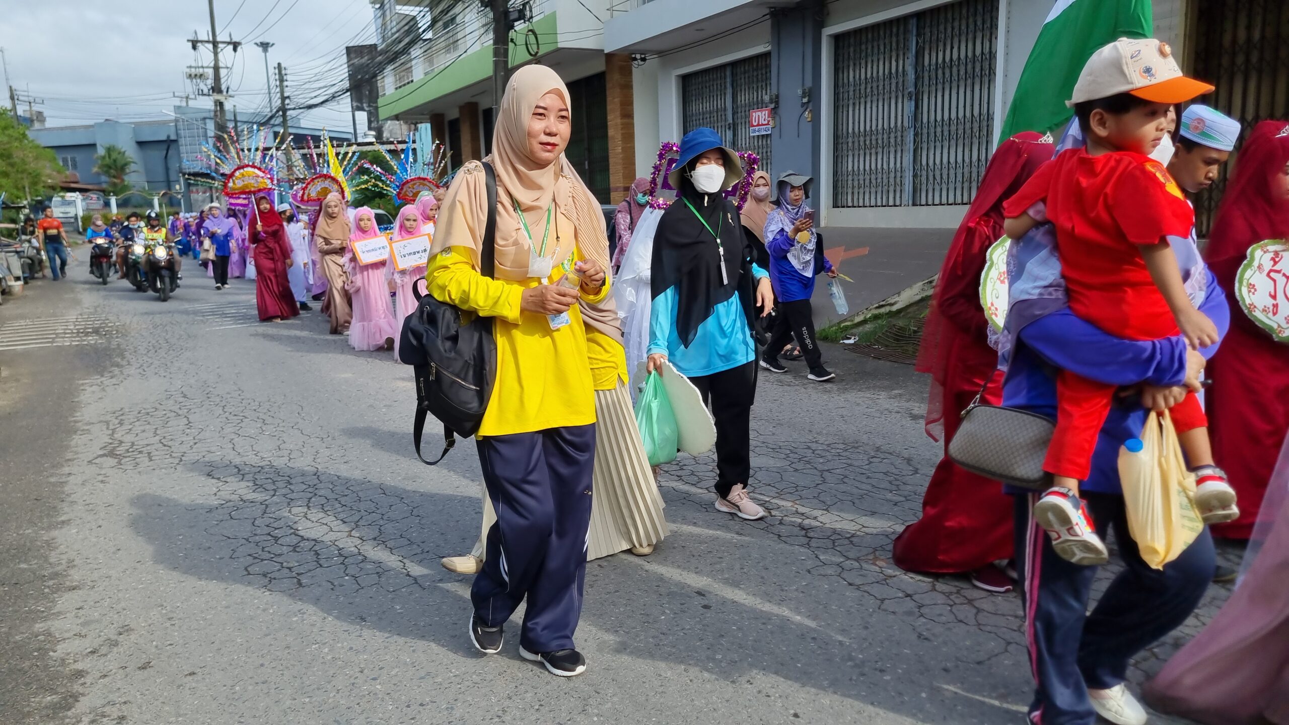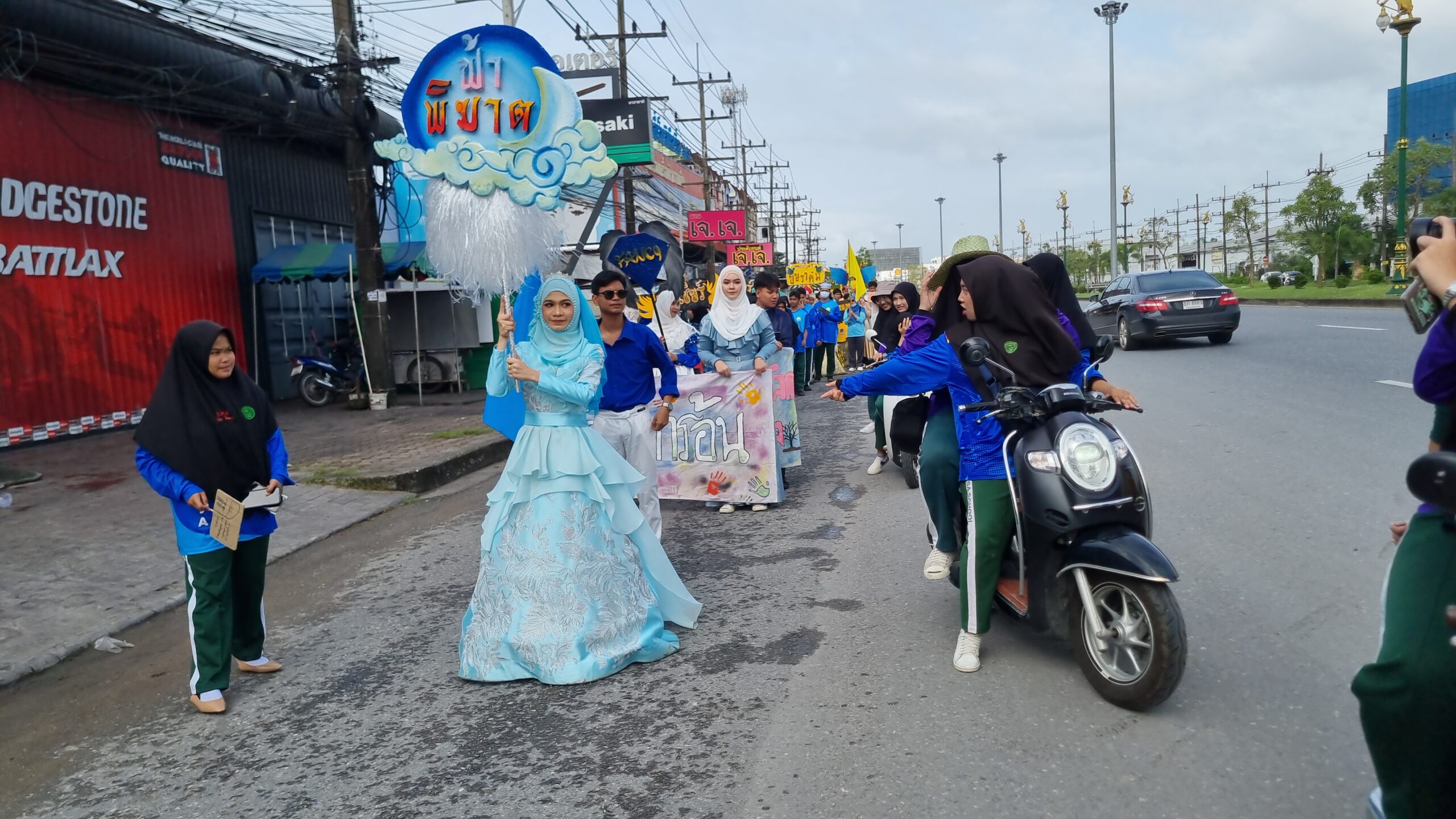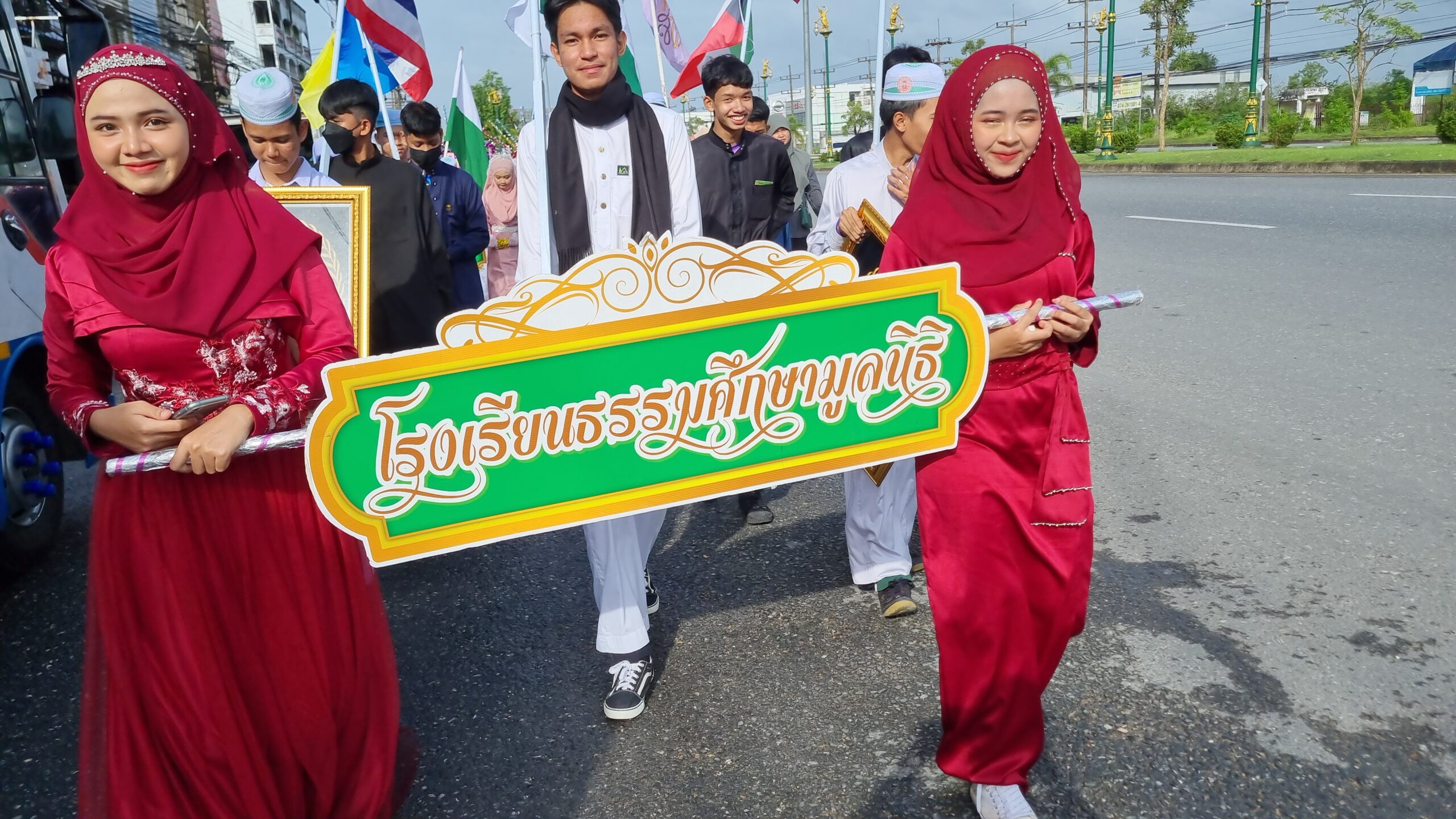 ส่วนบรรยากาศของขบวนพาเหรดก็มีสีสันของความเป็นชาวไทยมุสลิมและมีการถือป้ายรณรงค์สื่อถึงวิถีชีวิตและหลักการปฏิบัติตามหลักศาสนาอิสลาม