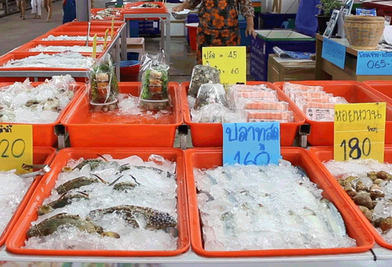 ขณะที่ น.ส.วรินทร์พร พลเมืองวิดี เจ้าของร้านทะเล 168 กล่าวว่า ที่ร้านขายอาหารทะเลสดที่นำมาจาก จ.ระนอง เป็นทะเลฝั่งอันดามันอย่างกุ้งลายเสือ กะพงทะเล หอยหวาน และปูม้า ทำให้มีความแตกต่างจากร้านอื่น ถือเป็นทางเลือกให้ลูกค้า
