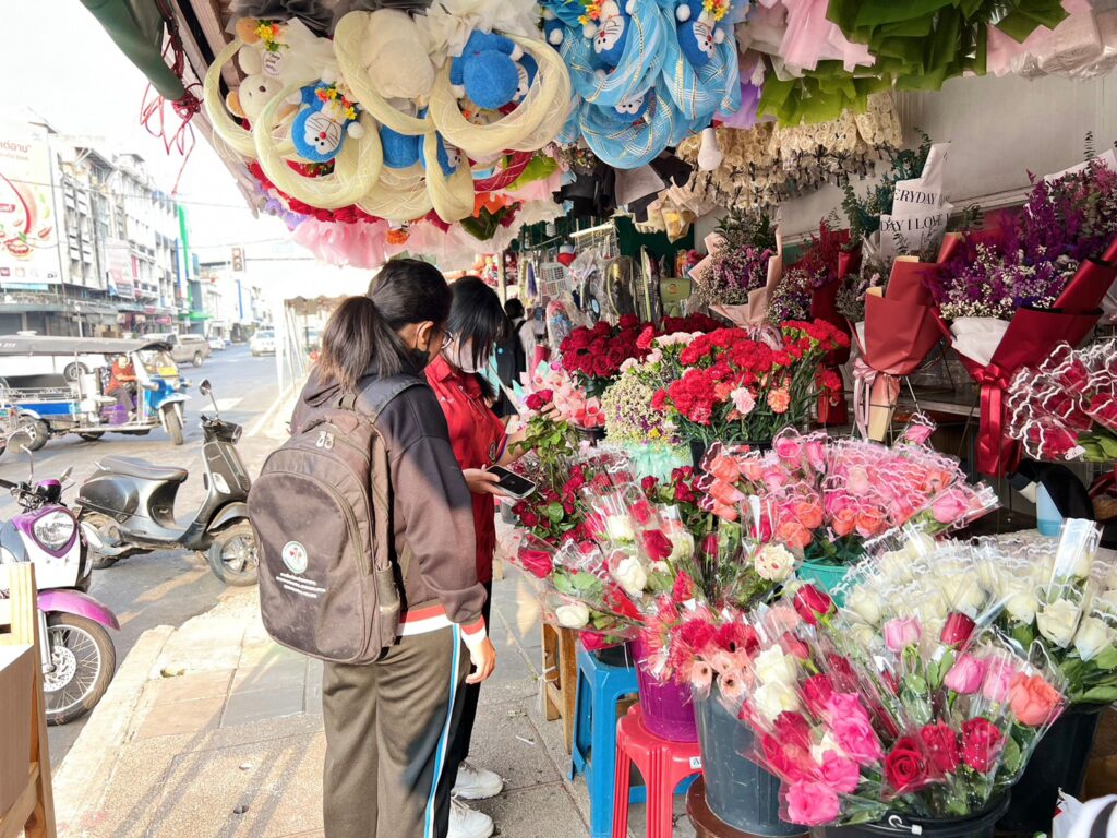 ซึ่งนางลัดดา อายุ 62 ปี เจ้าของร้านตุ๊กตาดอกไม้ กล่าวว่า เทศกาลวาเลนไทน์ปีนี้ ดอกไม้ขายดีมาก เนื่องจากสถานการณ์โควิดเริ่มคลี่คลาย สถานการณ์ดีขึ้น จึงส่งผลให้ประชาชนกล้าออกมาจับจ่ายซื้อของกันมากขึ้น ถึงแม้ราคาดอกไม้ เช่น ดอกกุหลาบ ในปีนี้พุ่งสูงขึ้น แต่ลูกค้าก็ยังสั่งเข้ามาเรื่อย ๆ ตั้งแต่ก่อนวันวาเลนไทน์ ซึ่งทางร้านทยอยรับออเดอร์มาตลอด และตอนนี้ก็ยังมียอดสั่งเพิ่มเข้ามาเป็นระยะ ๆ ส่วนลูกค้าหน้าร้านก็ให้การตอบรับเป็นอย่างดี ถือว่า วาเลนไทน์ปีนี้คึกคักเกินความคาดหมาย