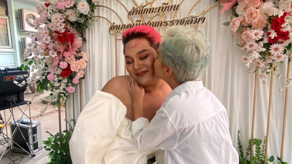 ชื่นมื่น คู่รักเเห่จดทะเบียนสมรสลอยฟ้า วิวาห์หลานย่า โคราชคึกคัก เจ้าสาวคู่รัก LGBTQ ขอใช้โอกาสวันดีวาเลนไทน์ฉลองสมรส
