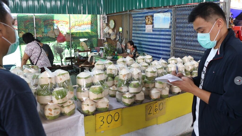 ที่ตลาดรถไฟขอนแก่น นายณจาวิทย์ ทัตหิรัญรัตน์ ผู้จัดการโครงการตลาดรถไฟขอนแก่น ลงพื้นที่ตรวจสอบการซื้อขาย-ผลไม้ ประจำวัน หลังชาวสวนและเกษตรกร ยังคงทยอยนำผลไม้นานานิดมาค้าส่งและค้าปลีกที่ตลาดรถไฟแห่งนี้กันตลอดทั้งวัน เนื่องจากเป็นตลาดค้าส่งผลไม้รายใหญ่ของภาคอีสานตอนกลางที่มีลูกค้ามารอการสั่งซื้อทั้งแบบค้าปลีกและค้าส่งจำนวนมาก ซึ่งจากการตรวจสอบวันนี้พบว่าบางร้านไม่สามารถรับซื้อผลไม้ในกลุ่มมะพร้าวน้ำหอมได้ เนื่องจากขณะนี้เริ่มขาดตลาด อันมีผลมาจากกลุ่มนายทุนหรือล้ง กว้านซื้อจากหน้าสวนเพื่อส่งจำหน่ายที่ประเทศจีน รวมไปถึงผลผลิตที่ลดลงจากสถานการณ์ภัยแล้งที่เกิดขึ้นในช่วงที่ผ่านมา