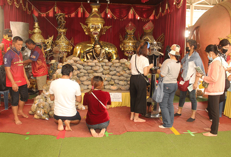 ประชาชนแน่นอาศรมฤๅษีเณร ส่องเลขเด็ดอ่างน้ำมนต์ ก่อนวันหวยออก