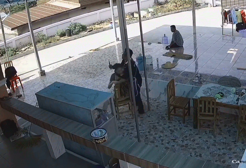 คลิปกล้องวงจรปิด จับภาพพ่อเลี้ยงโหด ใช้มีดจี้คอลูกเลี้ยงเพื่อขอคืนดีภรรยา