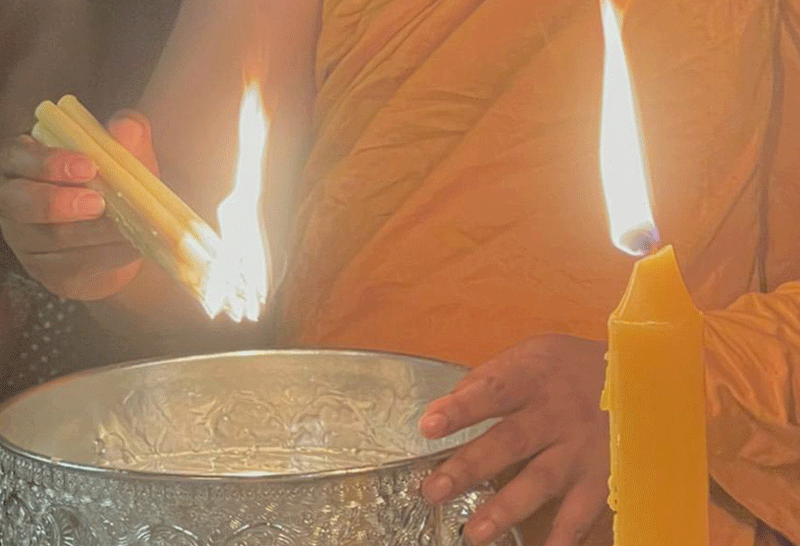 ด้านหน้าพ่อปู่ โดยพระครูปลัดธนะโรจน์ ปัญญาวชิโร (พระอาจารย์หมู) เป็นผู้ประกอบพิธี จุดเทียน ธูป บูชา พ่อปู่ศรีสุทโธนาคราช และพ่อปู่มุจรินนาคราชจากนั้นได้มีการหยดน้ำตาเทียนลงในขันน้ำมนต์ ท่ามกลางชาวบ้านที่เข้าร่วมพิธีอย่างใจจดใจจ่อ ซึ่งชาวบ้านที่เข้าร่วมพิธีต่างสวมหน้ากากอนามัยตามมาตราป้องกันการแพร่ระบาดของไวรัสโควิด19 หลังเสร็จพิธีชาวบ้านที่เข้าร่วมพิธีบวงสรวงพ่อปู่ศรีสุทโธนาคราช และพ่อปู่มุจรินนาคราชต่างทยอยกันเข้ามาส่องเลขเด็ดจากดอกน้ำมนต์ในขันน้ำมนต์ บางรายก็นำโทรศัพท์มือถือมาถ่ายดอกน้ำมนต์ที่ปรากฏเป็นเลขให้เห็น และเมื่อถ่ายรูปเลขในขันน้ำมนต์ได้แล้วก็ส่งไปให้ญาติและเพื่อนที่อยู่ต่างจังหวัดและที่บ้าน ก่อนที่จะนำเลขเด็ดที่ตนเห็นไปซื้อสลากกินแบ่งที่พ่อค้าแม่ค้านำมาวางจำหน่ายโดยรอบบริเวณวัดเป็นการเสี่ยงโชคกันอีกด้วย