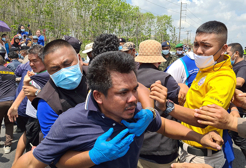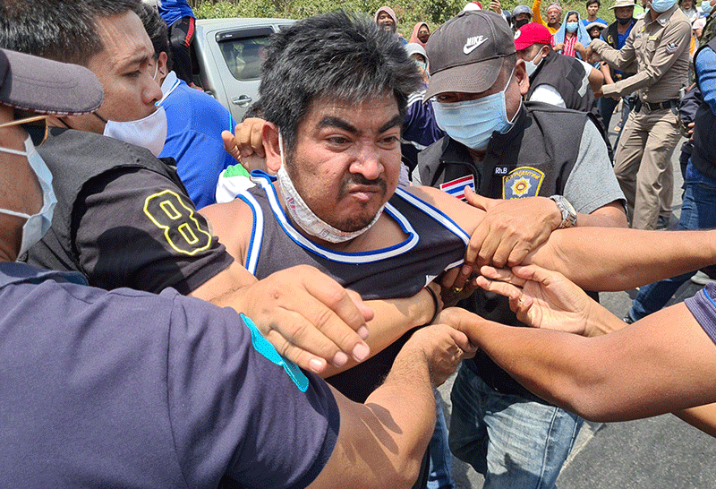 ได้ร่วมกันแถลงข่าวจับกุม นายประถม อายุ 49 ปี หรือ ”บังหมัด กงหรา” ตามหมายจับของศาลจังหวัดสงขลา ที่ จ.68/2564 ลงวันที่ 28 ก.พ.64